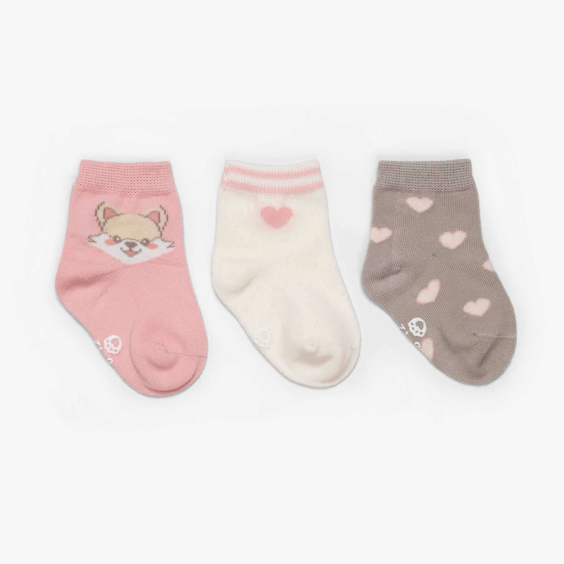 מארז שלישיית זוגות גרביים מעוצבות בהדפסים של לבבות ושועל.