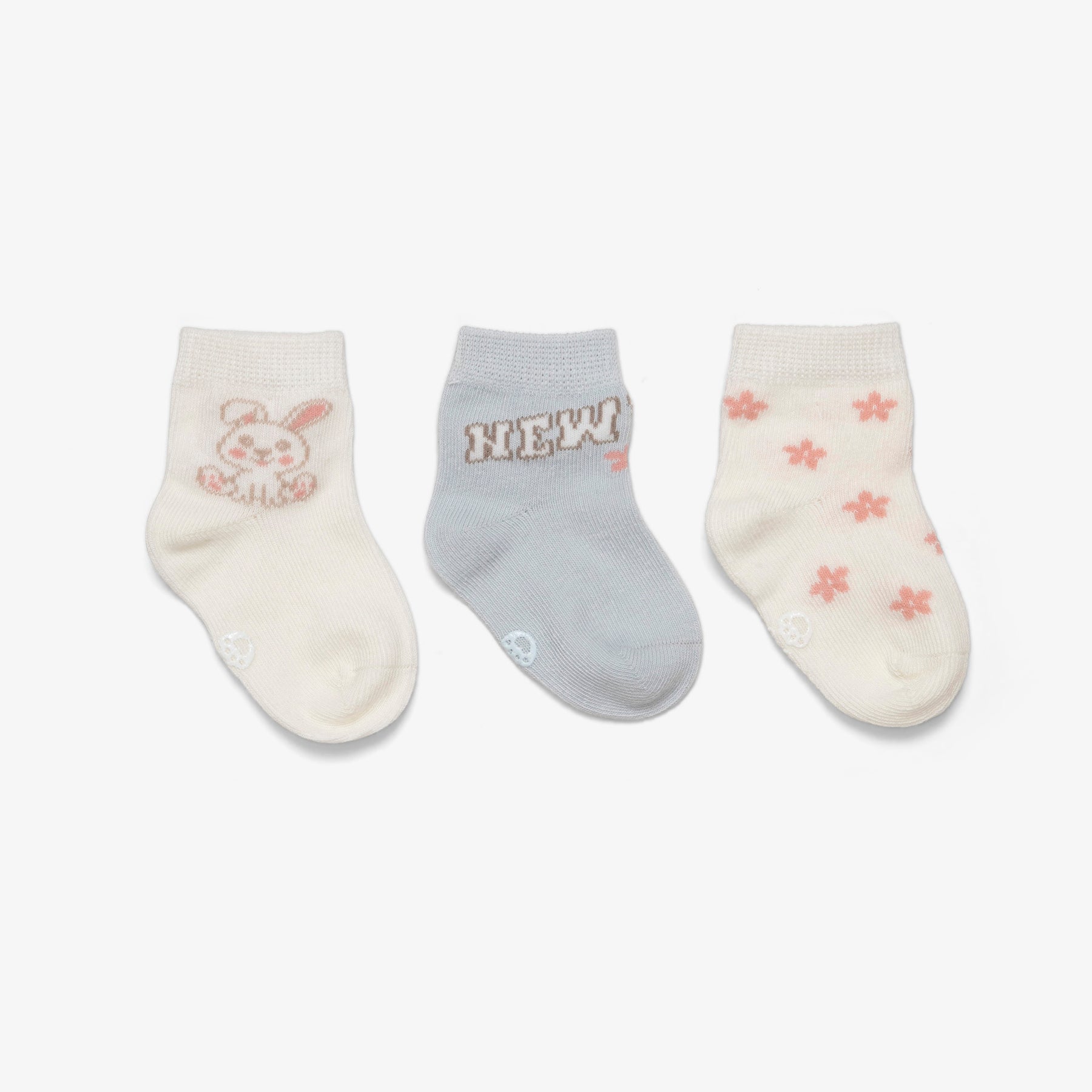 מארז שלישיית זוגות גרביים מעוצבות בהדפסים של פרחים וארנב.