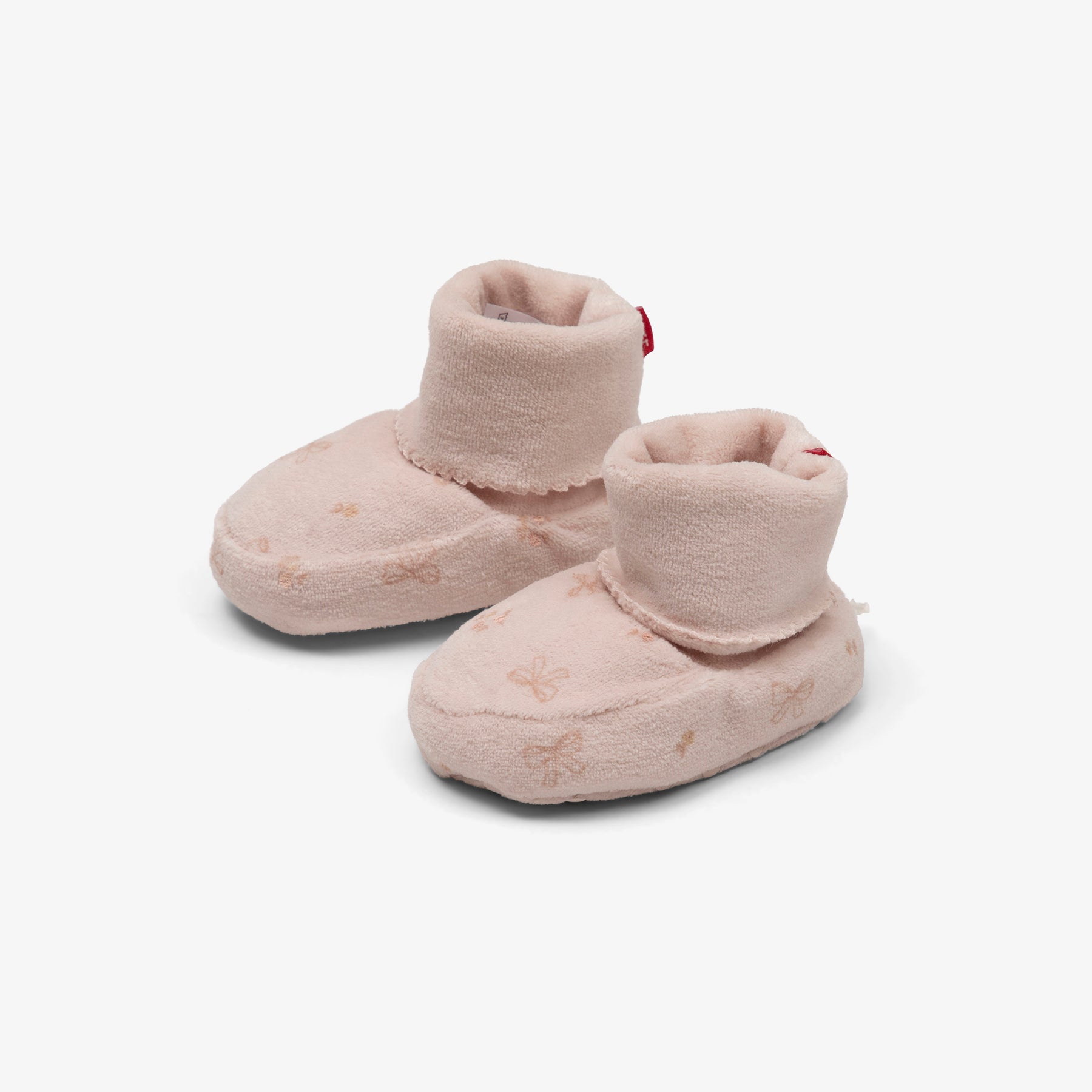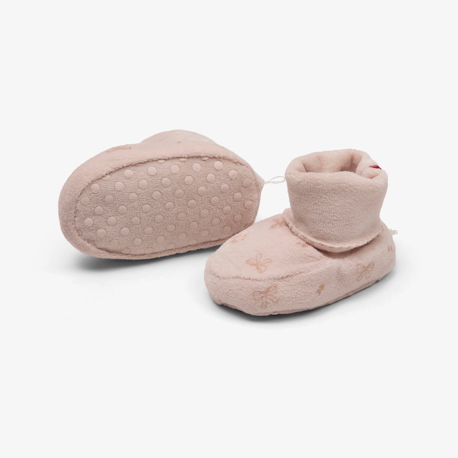 נעלים רכות לתינוקות בצבע פודרה ובהדפס פפיונים.