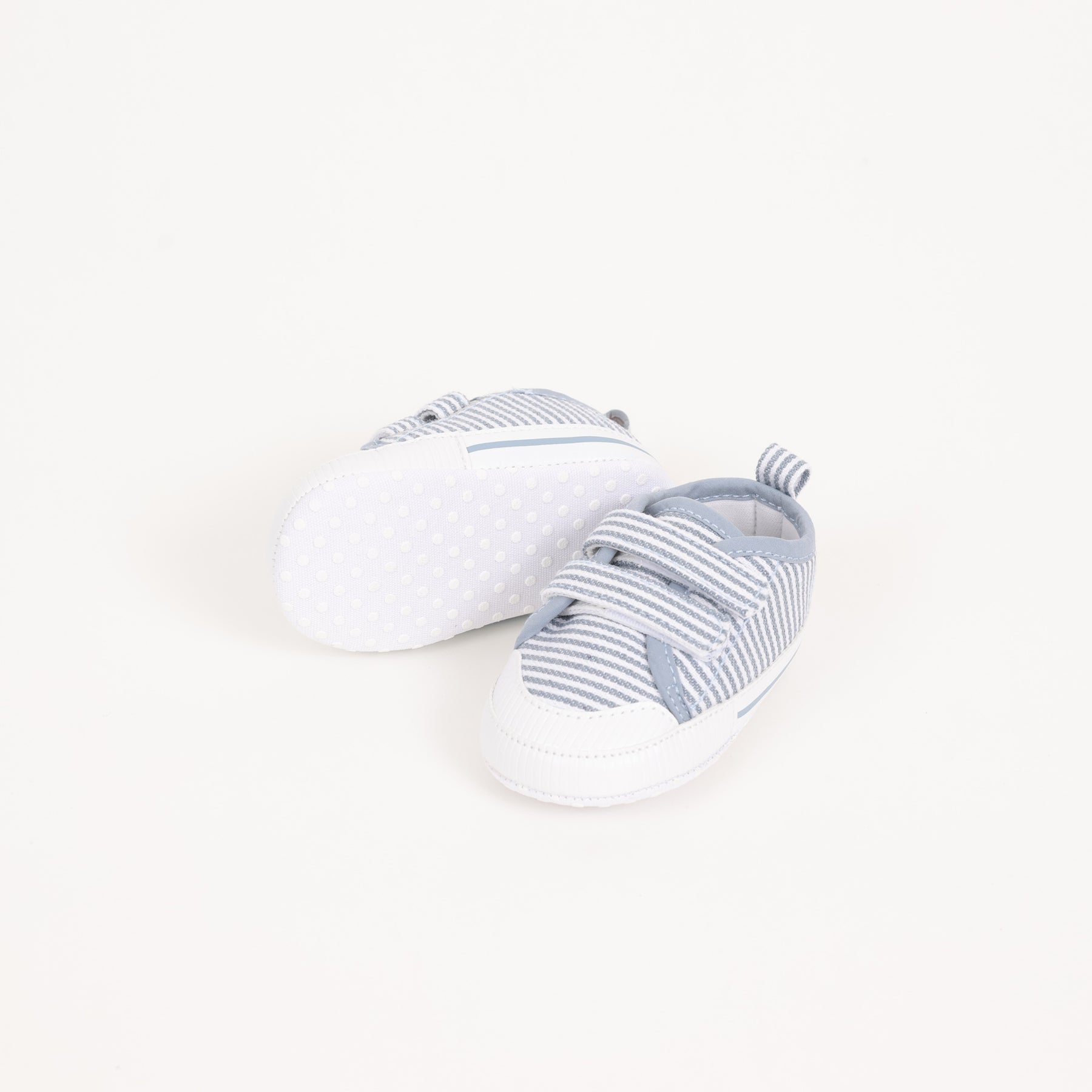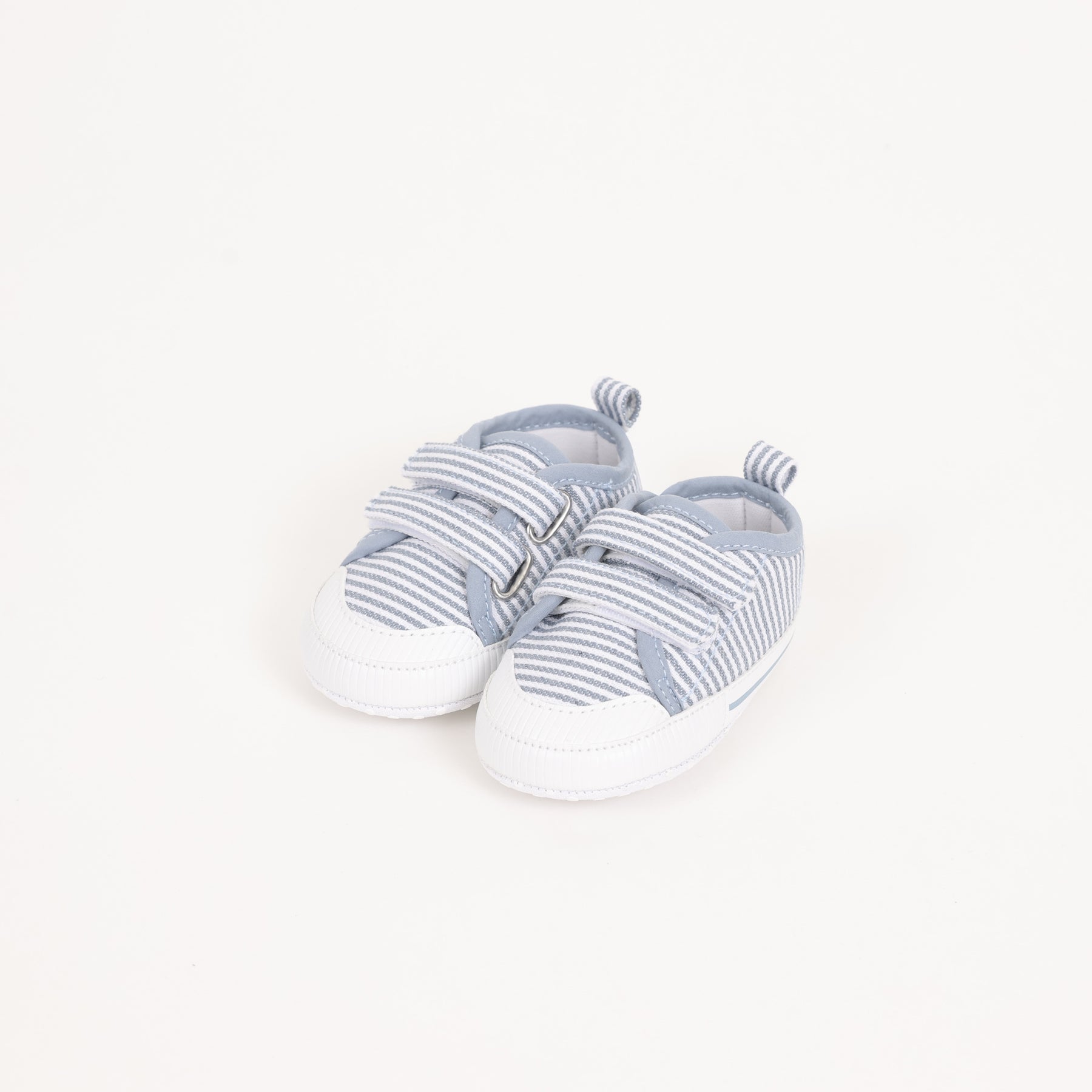 נעלי סניקרס בדוגמת פסים כחול ולבן מדליקות ומתוקות במיוחד. נעליים רכות המתאימות לכל פריט לבוש ולכל אירוע. סגירת סקוטץ' להלבשה נוחה. עשויות 100% כותנה.