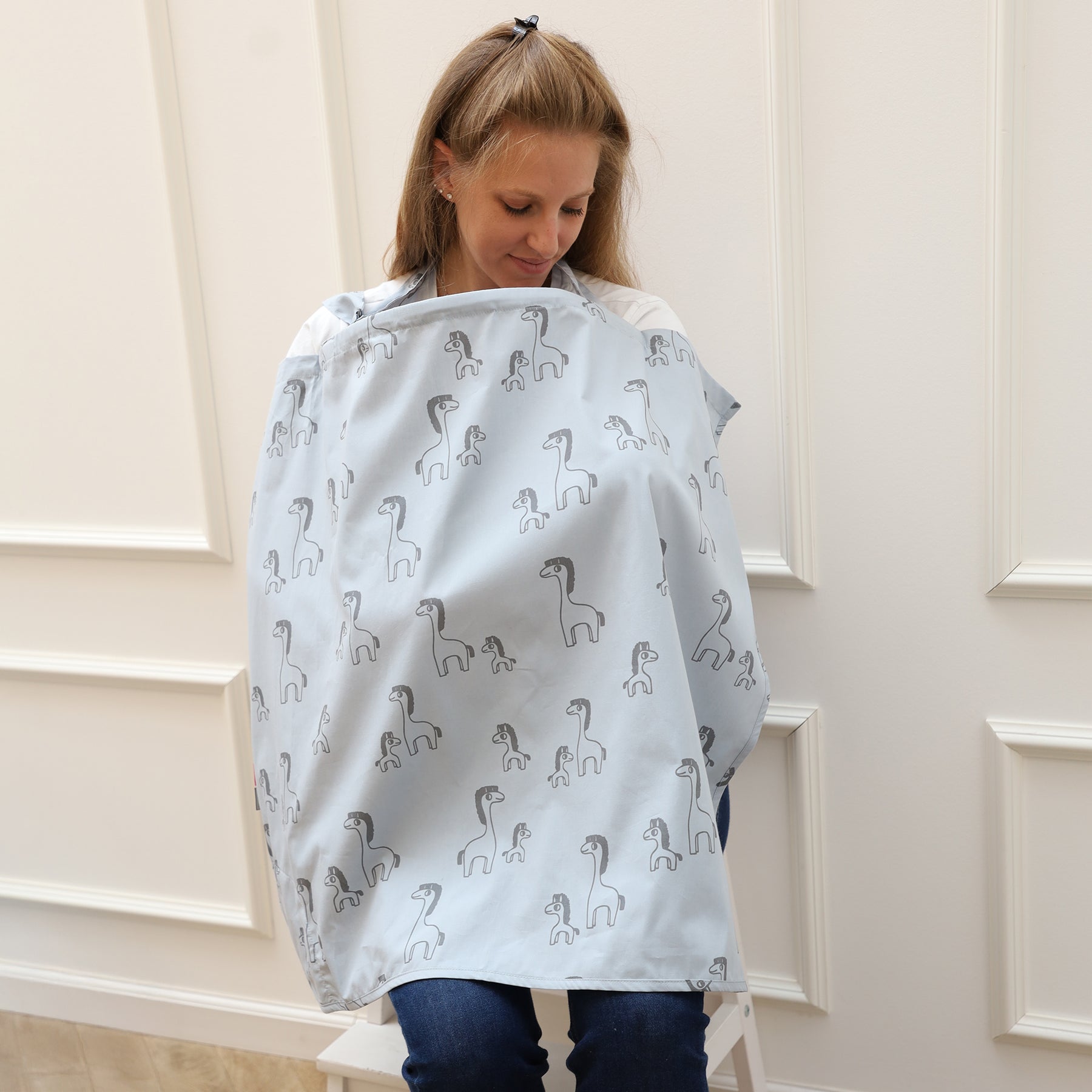 סינר הנקה טרנדי זברה אפור על תכלת