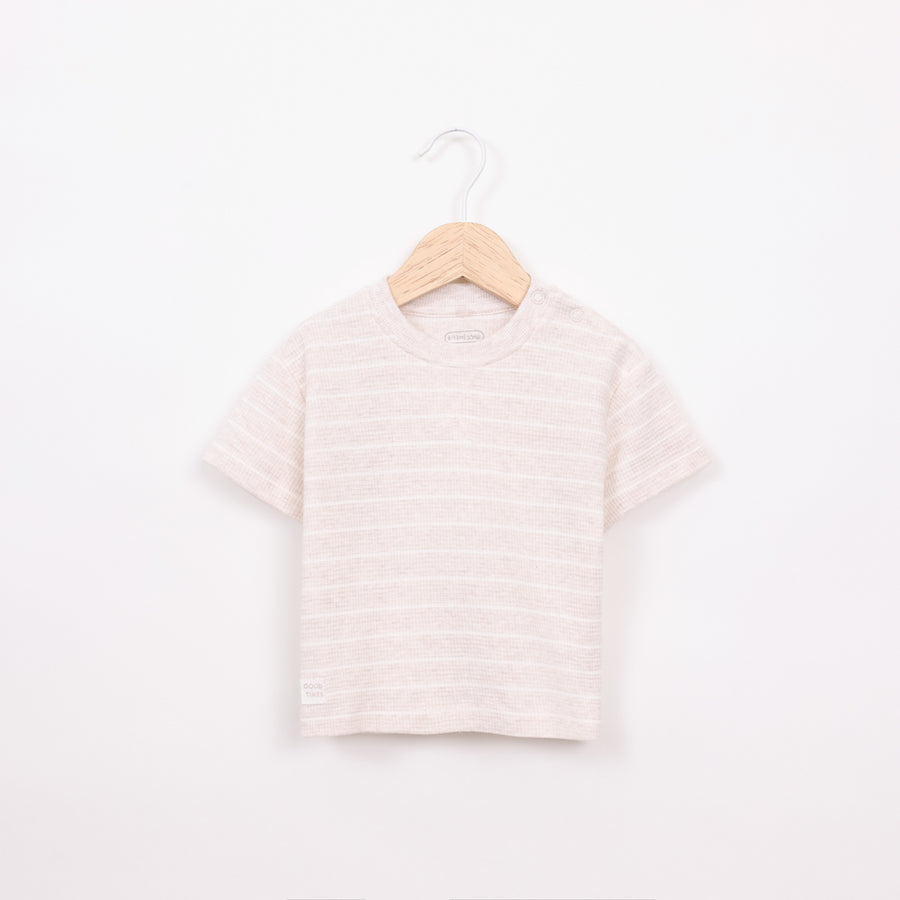חולצה קצרה עם פסים בצבע שמנת