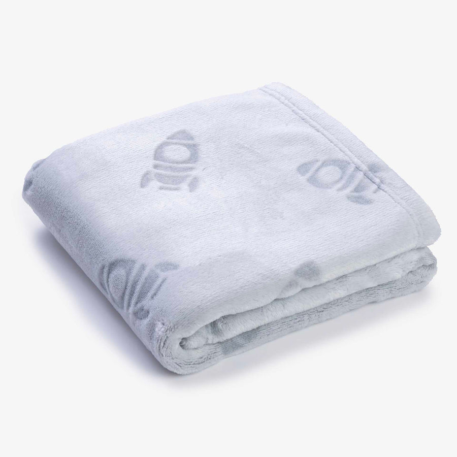 שמיכת קורל פליז לעגלה חלליות תכלת