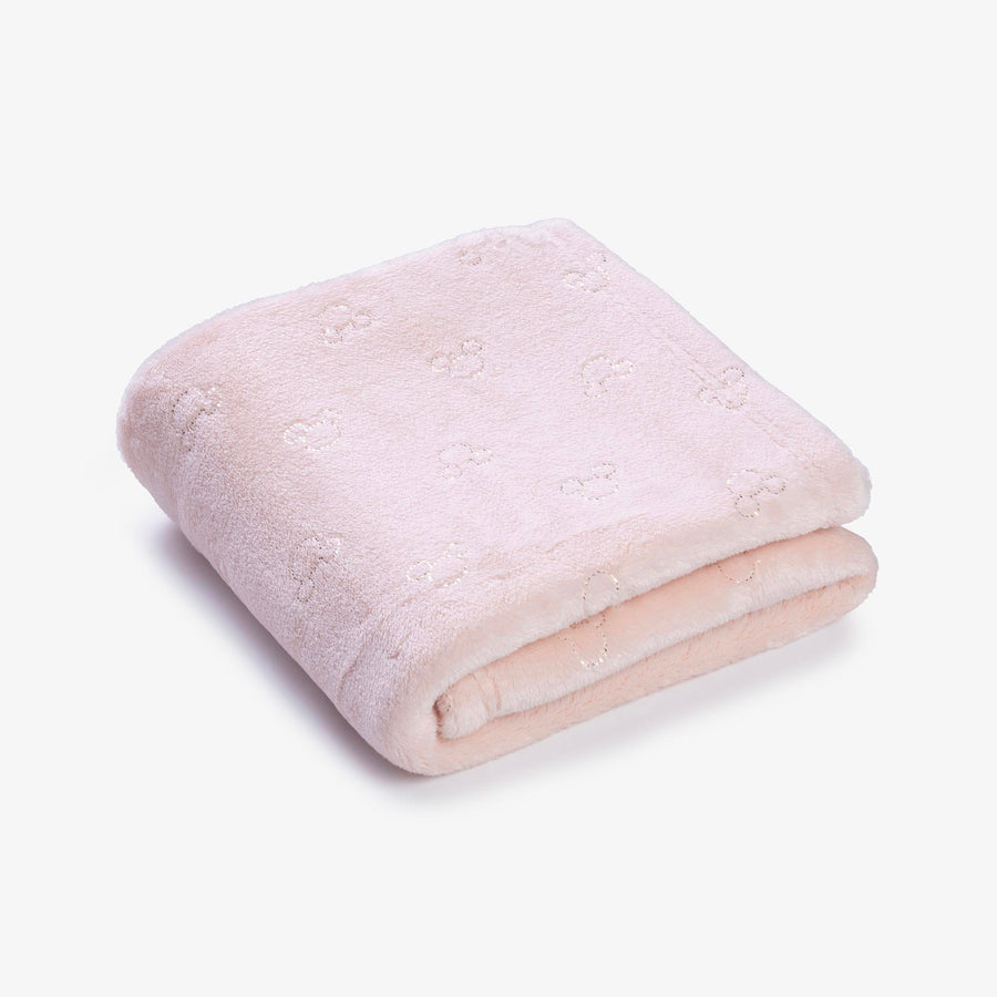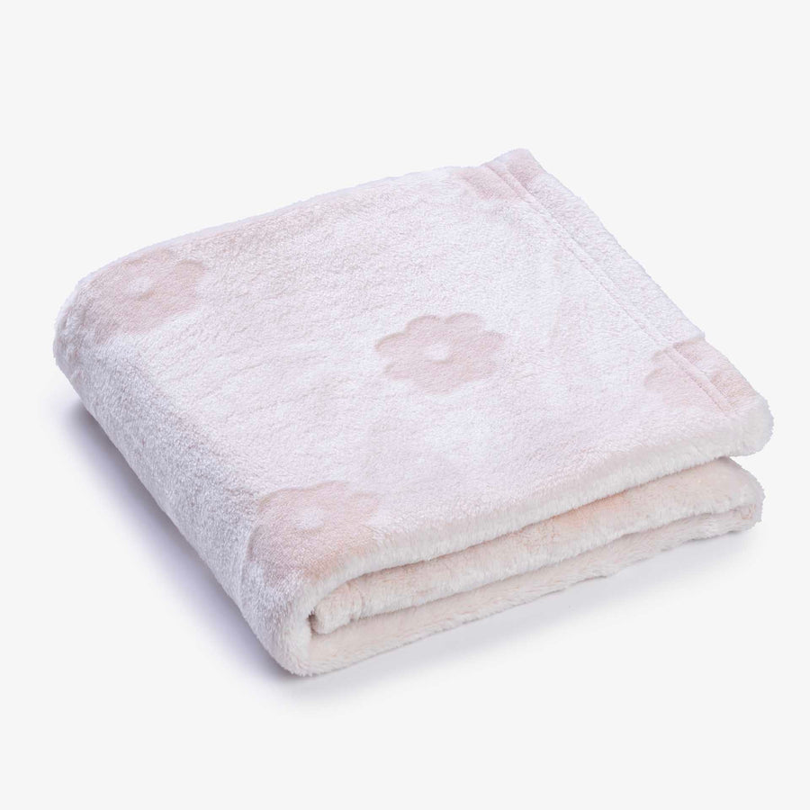 שמיכת קורל פליז לעגלה פרחים ורוד