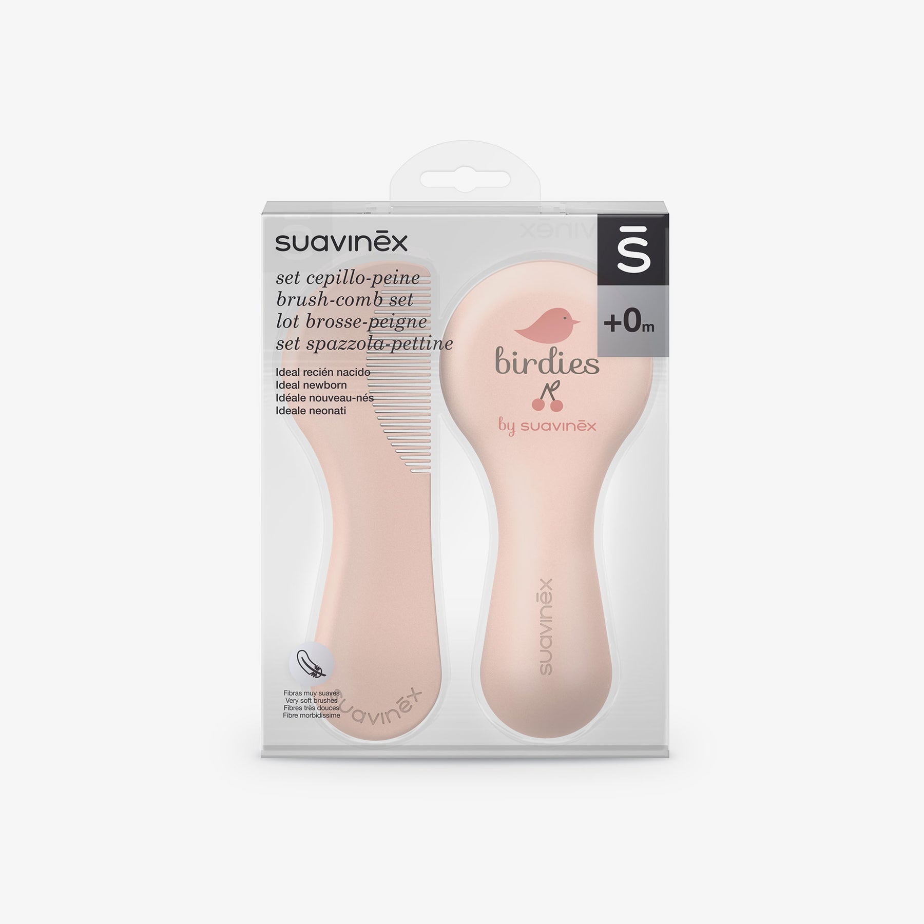 סט מברשת ומסרק קולקציית בירדס BIRDIES למברשת שיערות רכות במיוחד המתאימות לסירוק התינוק כבר בימיו הראשונים. ניתן לשימוש מגיל לידה.