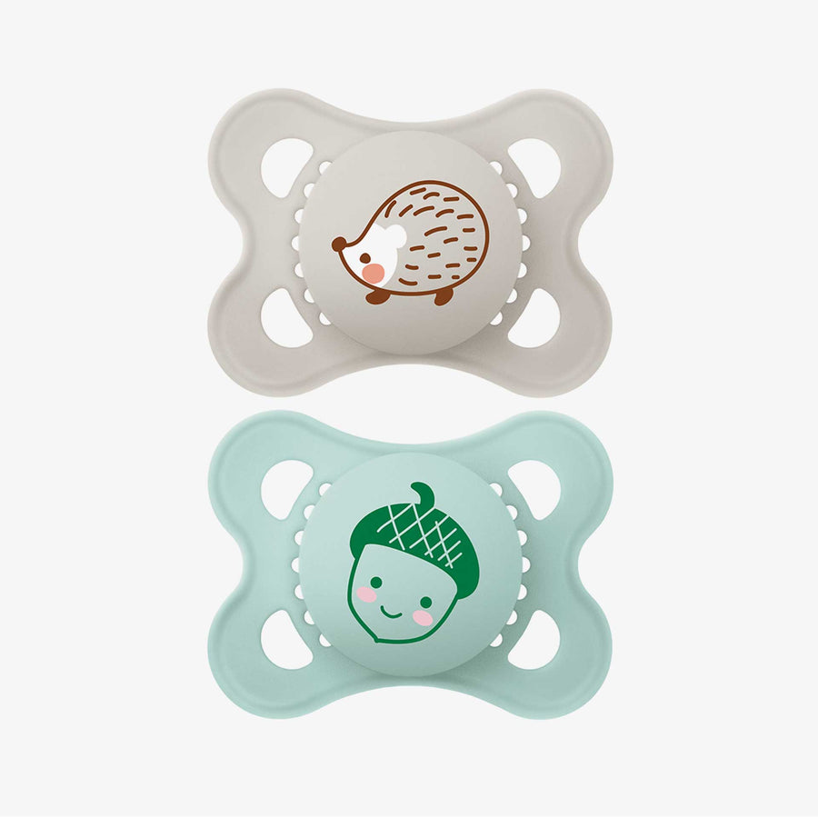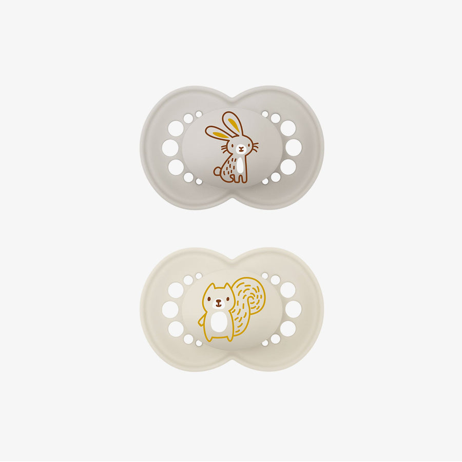 זוג מוצצים סיליקון חום/פודרה סופרים 0-6 -ביבס Bibs