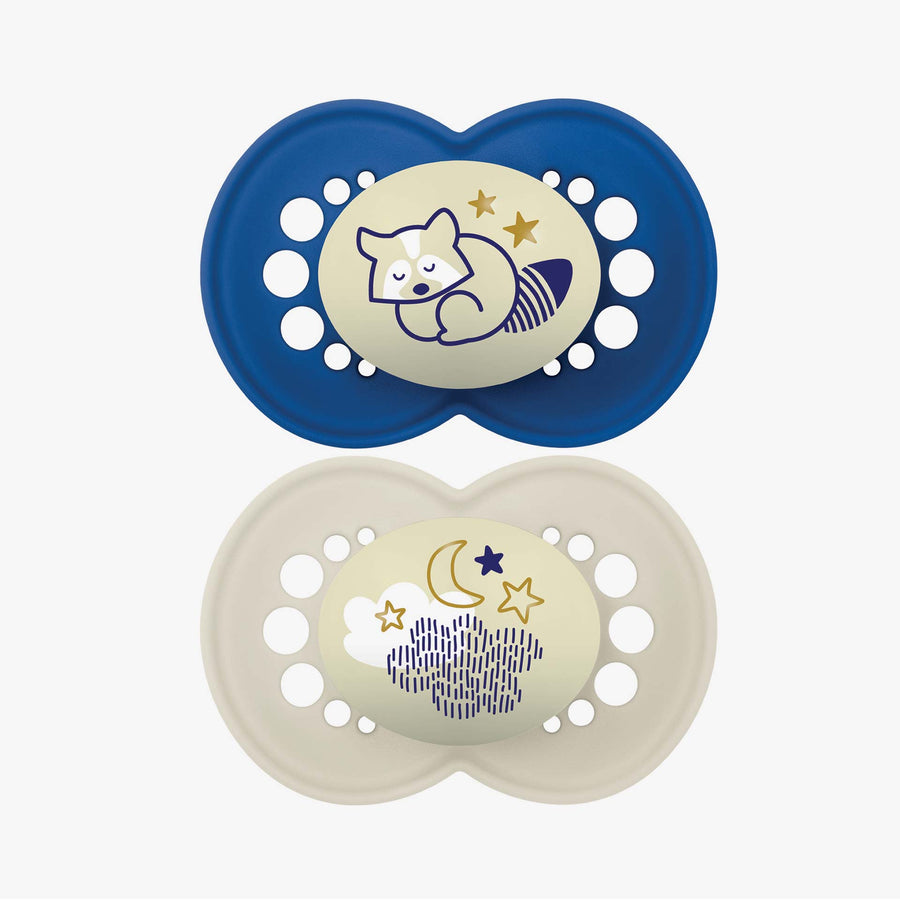 זוג מוצצים סיליקון 6+ זוהרים בחושך תכלת