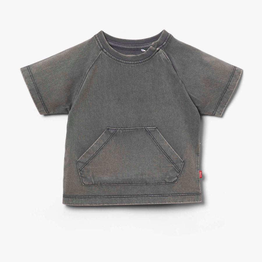 חולצה קצרה בצבע פחם. לחולצה כיס בסגנון קנגורו.