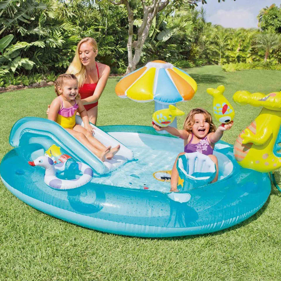 הליכון כחול מתנפח לבריכה ולים עם גגון נשלף