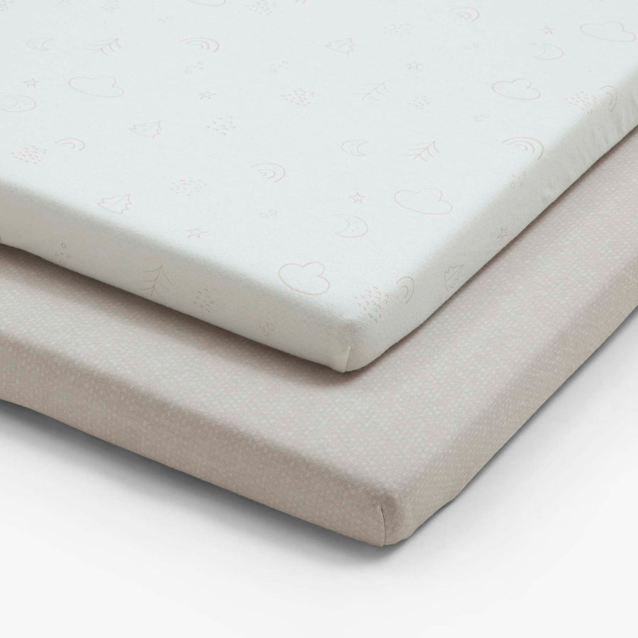 זוג סדינים לעריסה בעיצוב דקור של טייני לאב עם עיצוב מינימליסטי צבעים רגועים וטקסטורות רכות. גודל 45X85 סמ . עשוי 100% כותנה.