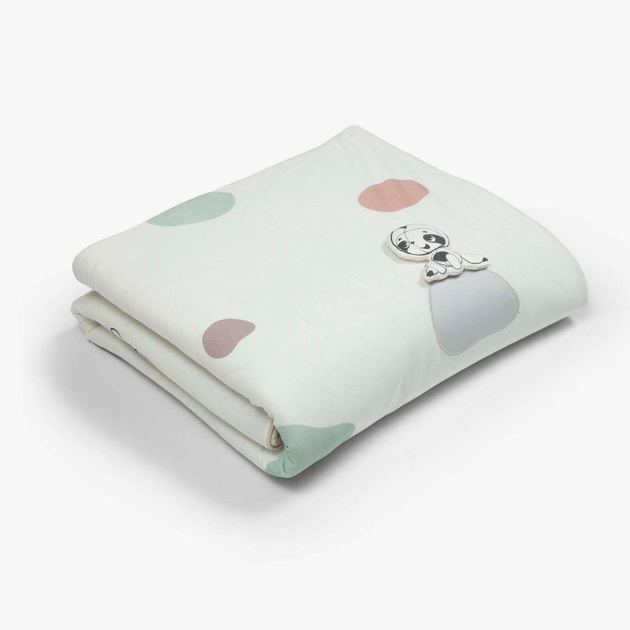 שמיכה עם מילוי למיטת תינוק בעיצוב דקור של טייני לאב עם עיצוב מינימליסטי צבעים רגועים וטקסטורות רכות. גודל 115X85 סמ. בד חיצוני 100% כותנה. מילוי 100% פוליאסטר.