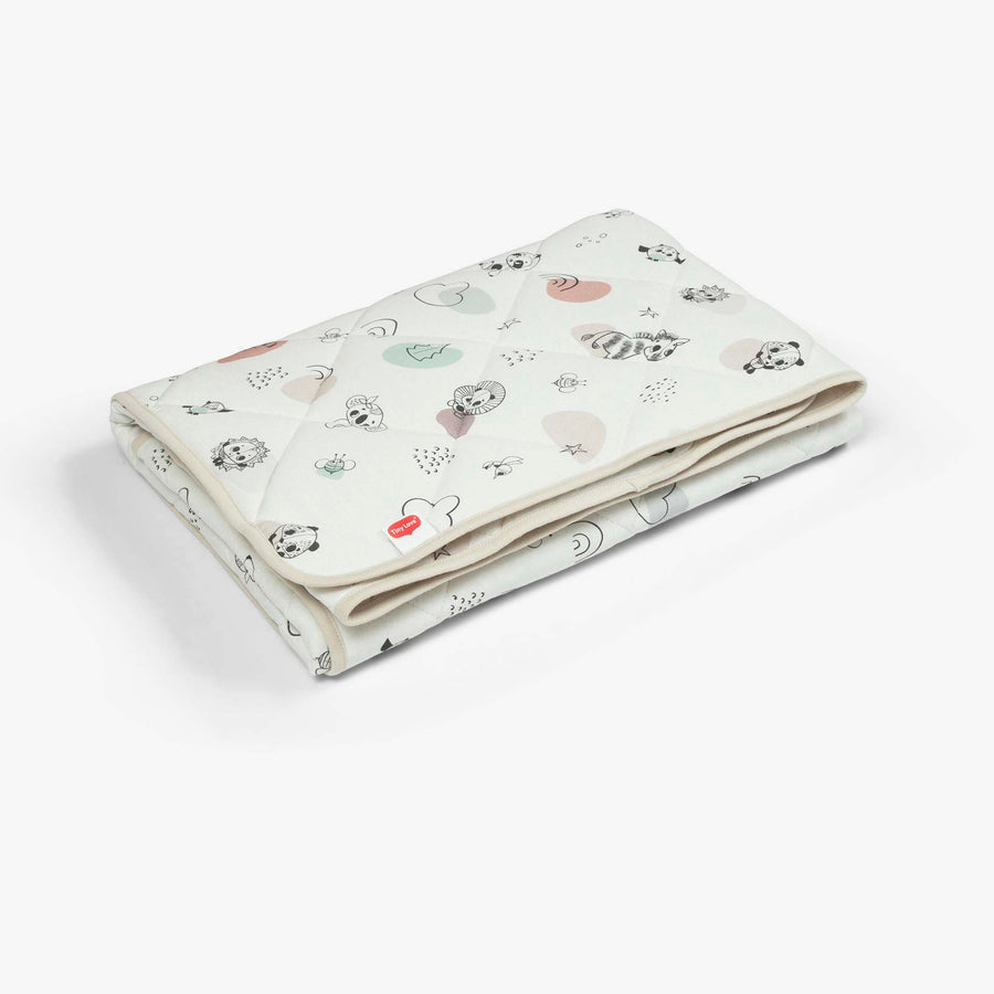שמיכת קווילט למיטה בעיצוב דקור של טייני לאב עם עיצוב מינימליסטי צבעים רגועים וטקסטורות רכות. גודל 90X120 סמ. בד חיצוני 100% כותנה. מילוי 100% אקרילן.