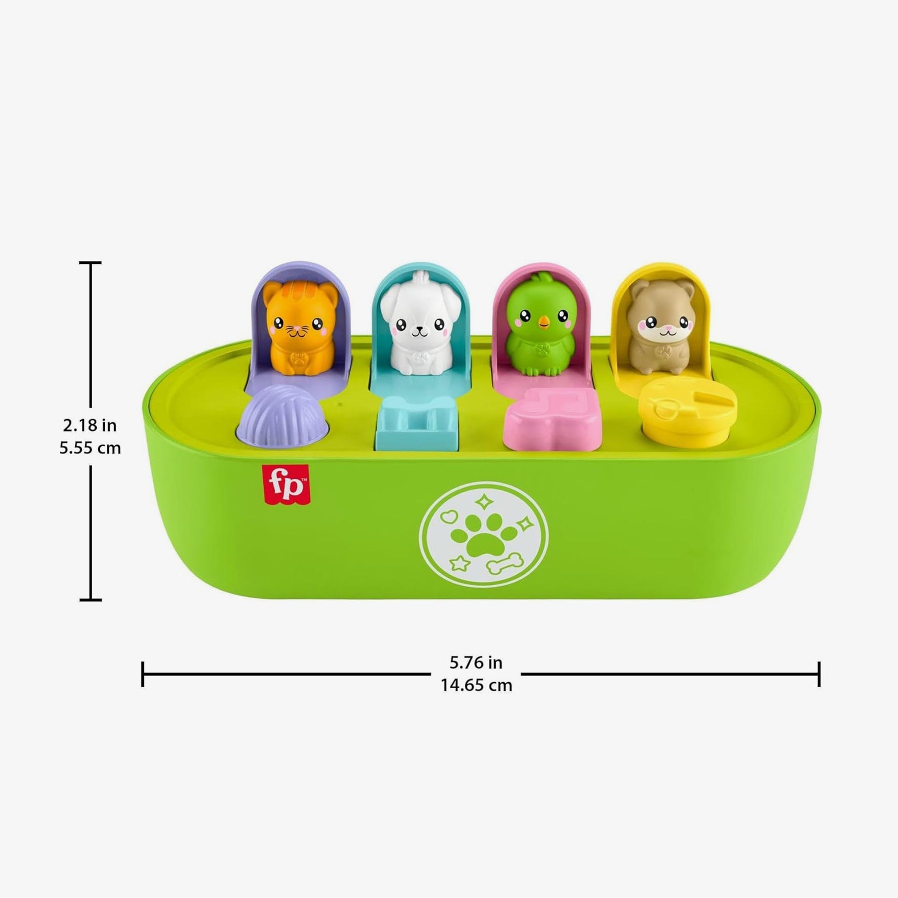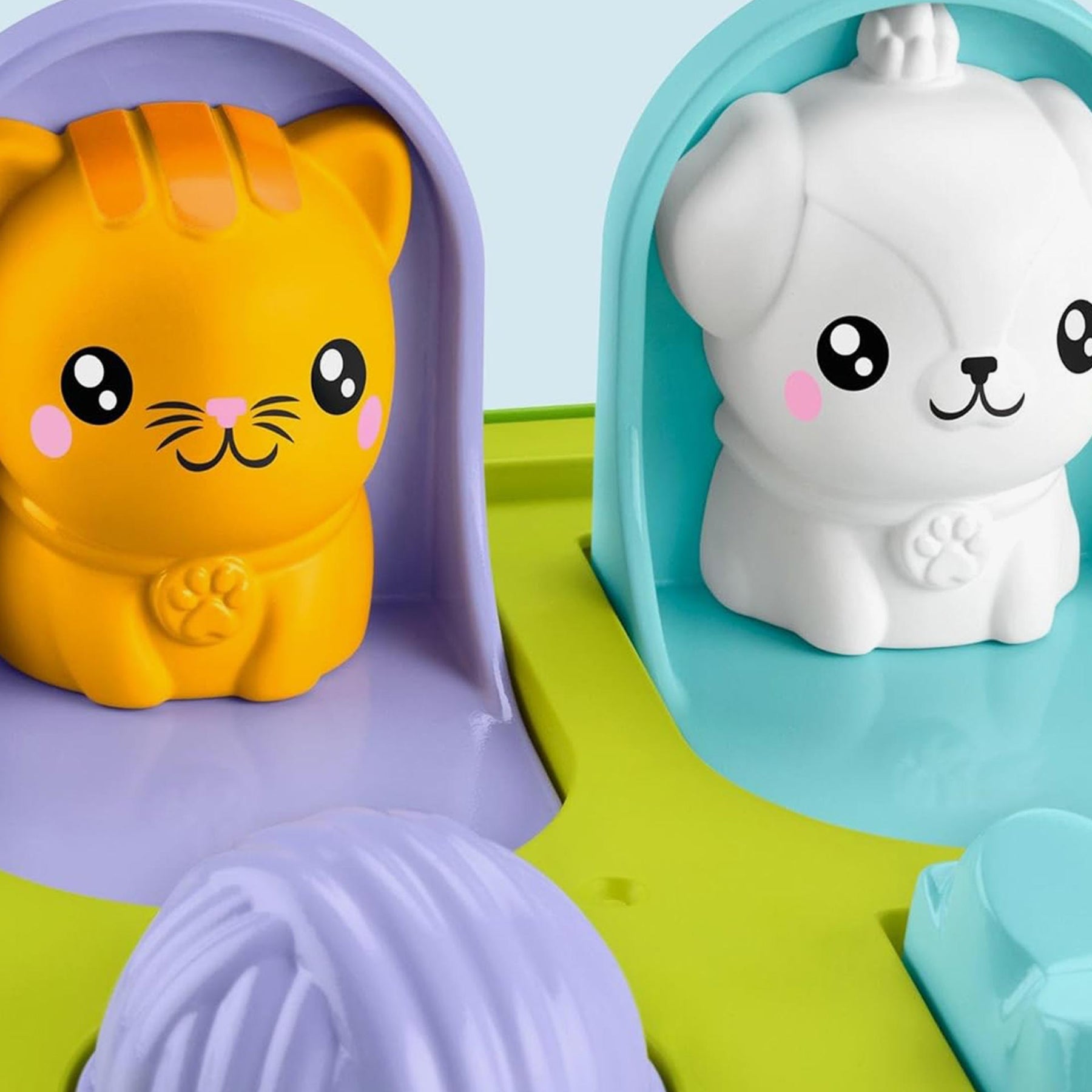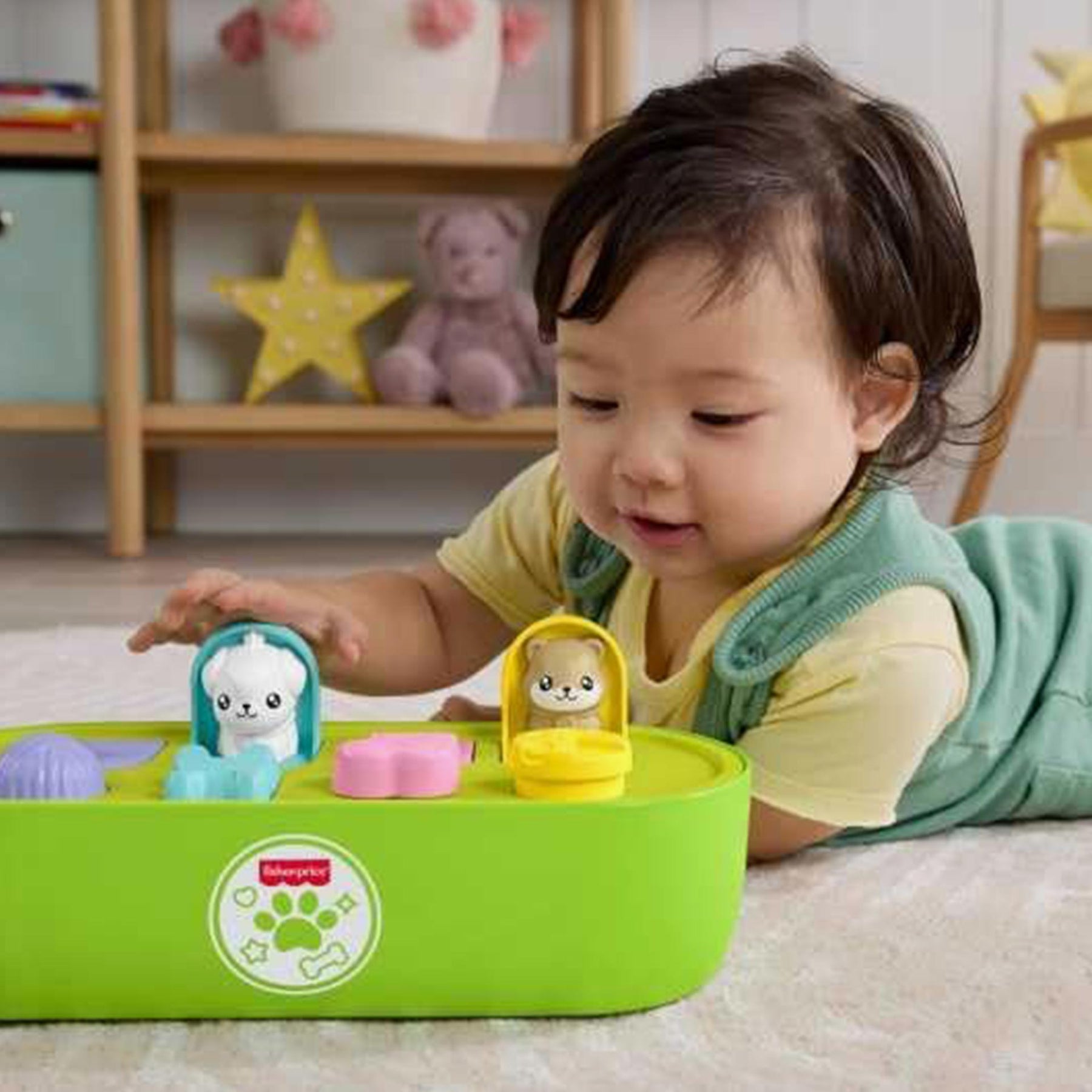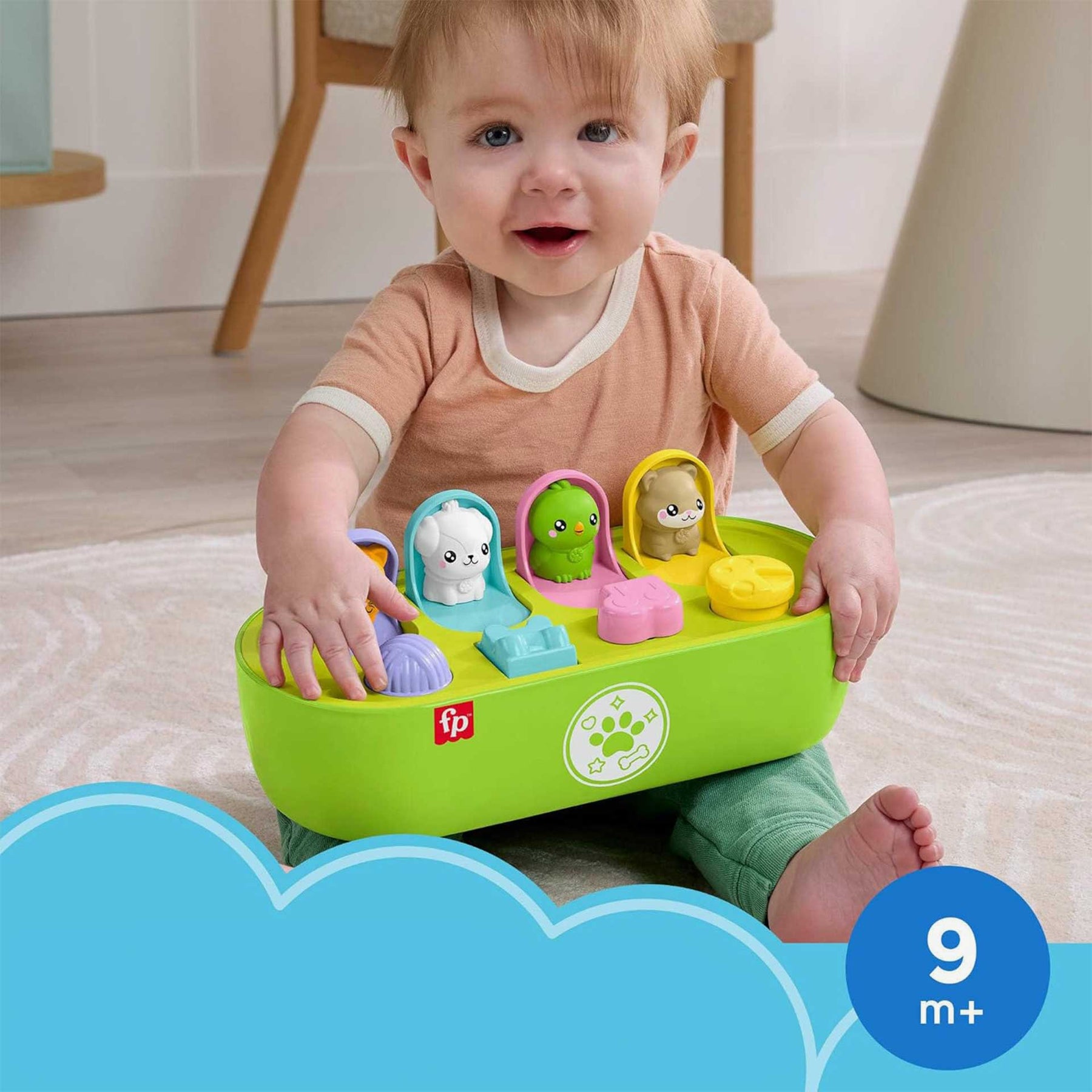צעצוע פעילות אינטראקטיבי הכולל ארבע חיות קופצות צבעוניות וידידותיות המסתתרות בתאים ממוספרים מאחד עד ארבע. כל תא נפתח באמצעות הפעלה שונה ומגלה את החיה הקופצת בהפתעה .על התינוק ללחוץ להזיז להחליק או לסובב וכך לגלות את ארבע החיות החבריות והחייכניות בדמות החתול הכלב הציפור והסנאי .הצורות המרקמים הצבעים מפתחים את הראייה וחוש מישוש ומחזקים תיאום עין יד .תן למשחק במנח שכיבה על הבטן או בישיבה . מתאים מגיל 9 חודשים ומעלה.