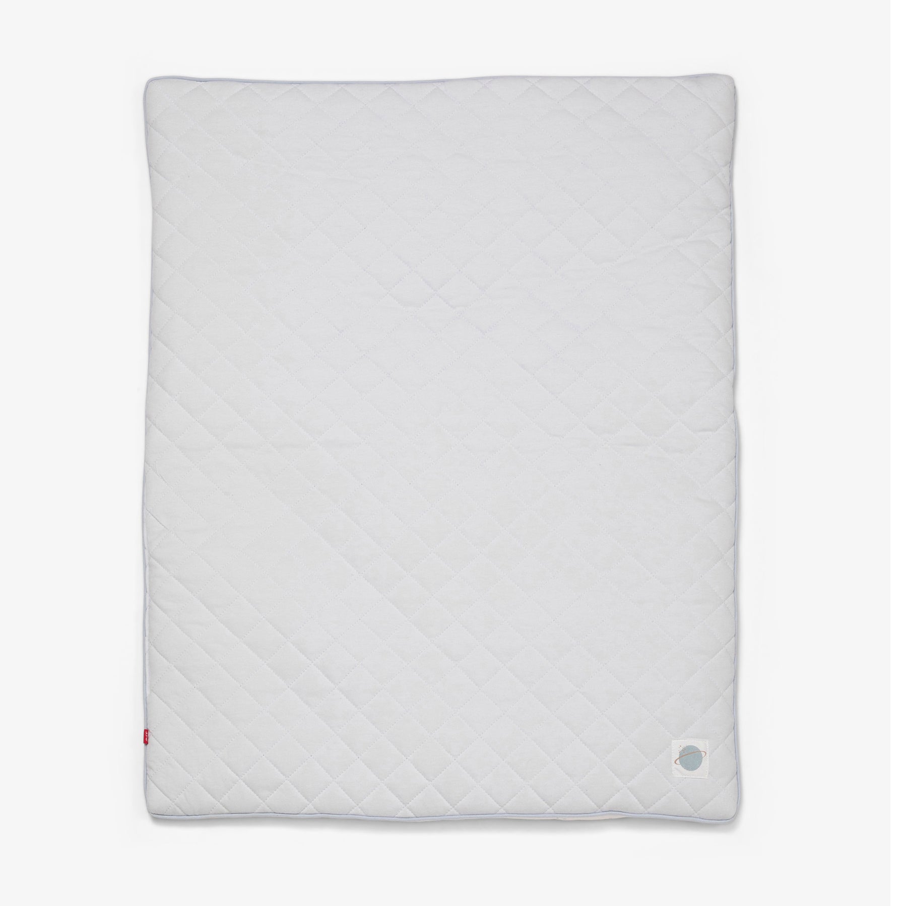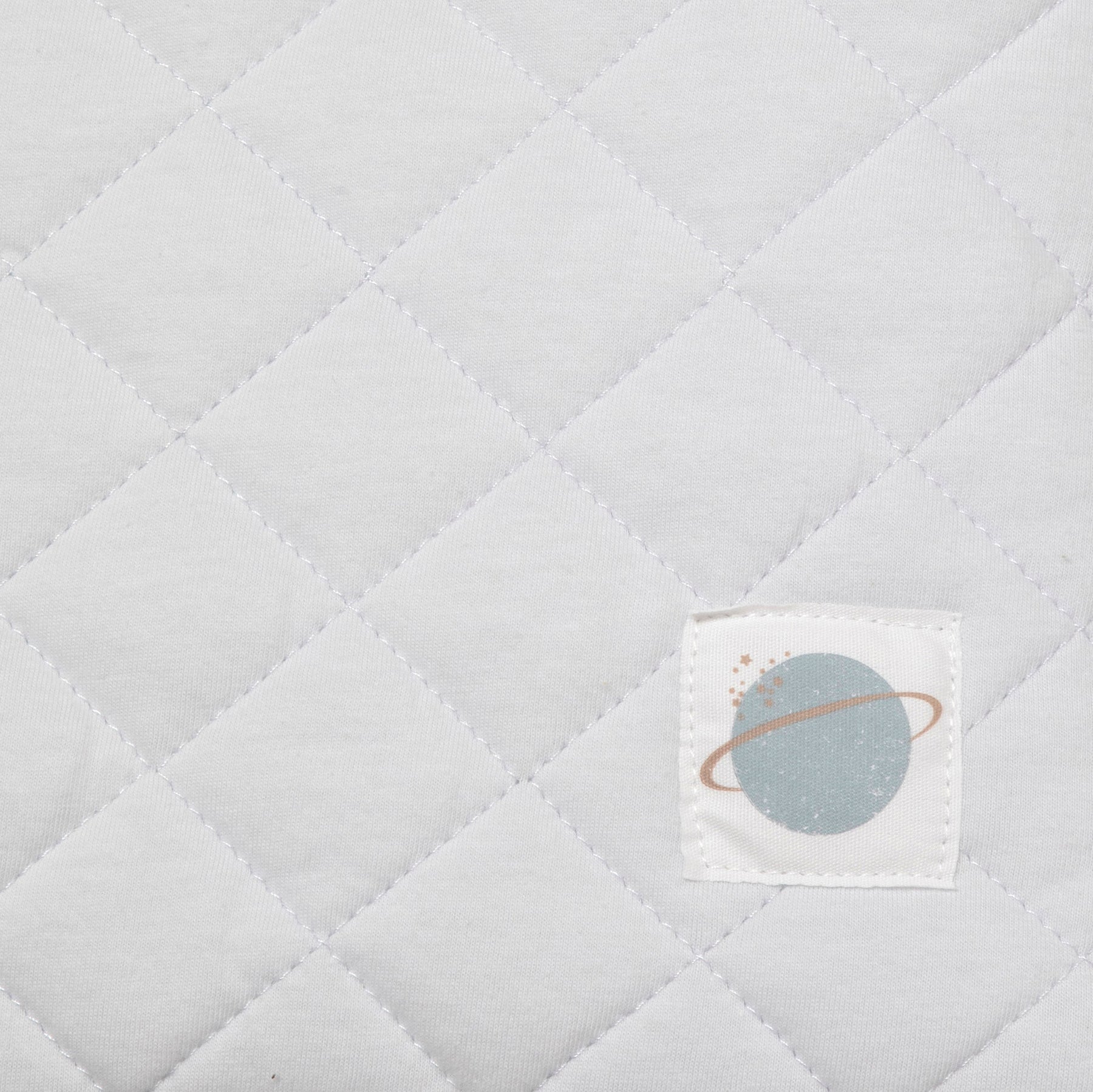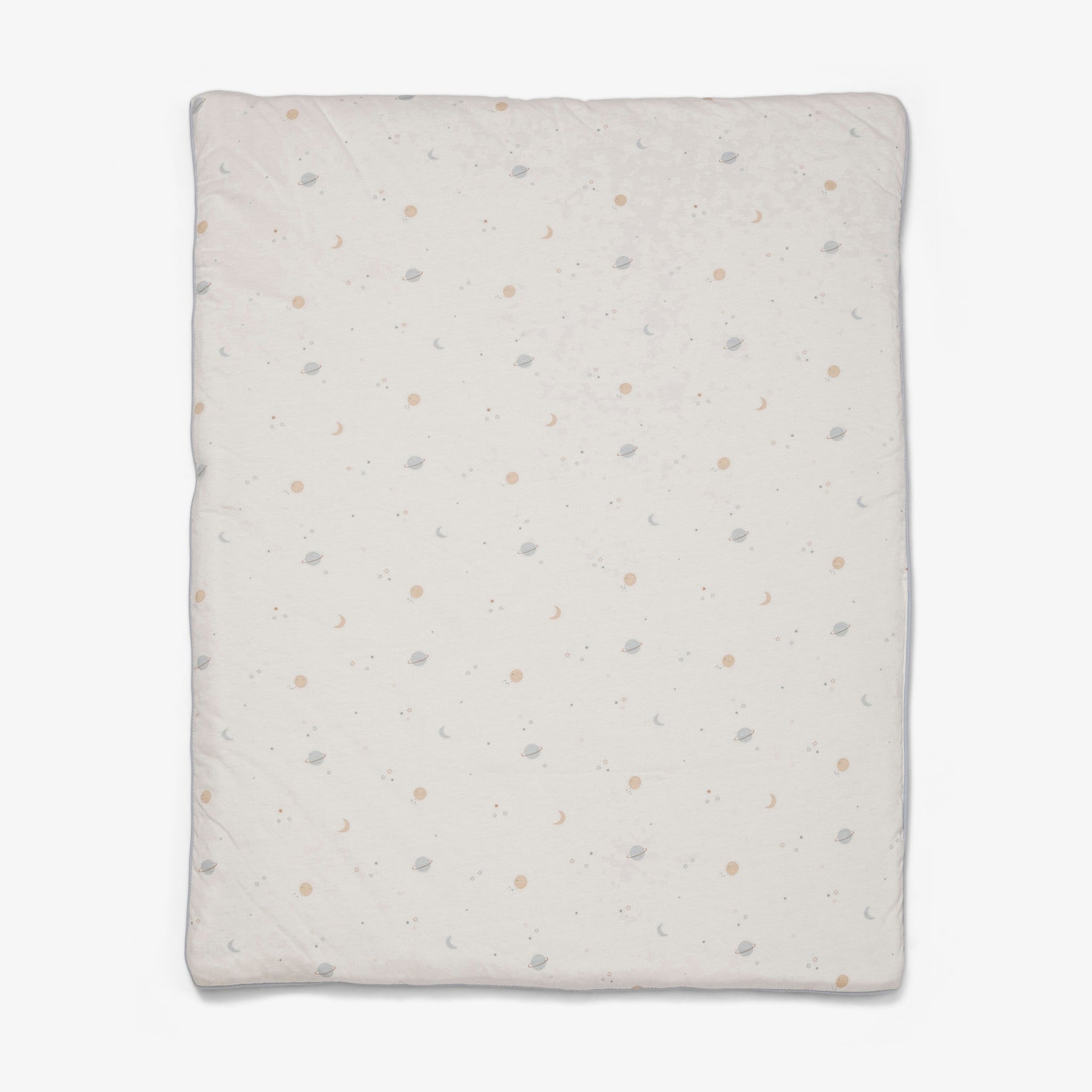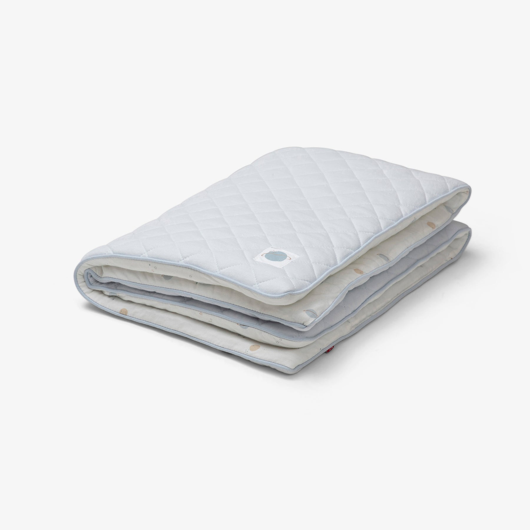 שמיכה עם מילוי לעריסת תינוק/ת בצבע כחול בייבי ובעיצוב חלליות. מידה 80X62 סמ. הרכב בד כיסוי 100% כותנה+ מילוי 100 הוליפייבר.