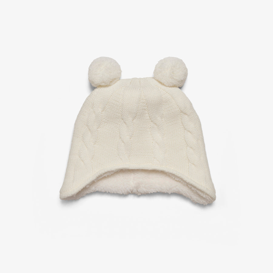 כובע קווילט עם כיסוי אוזניים צבע קרם