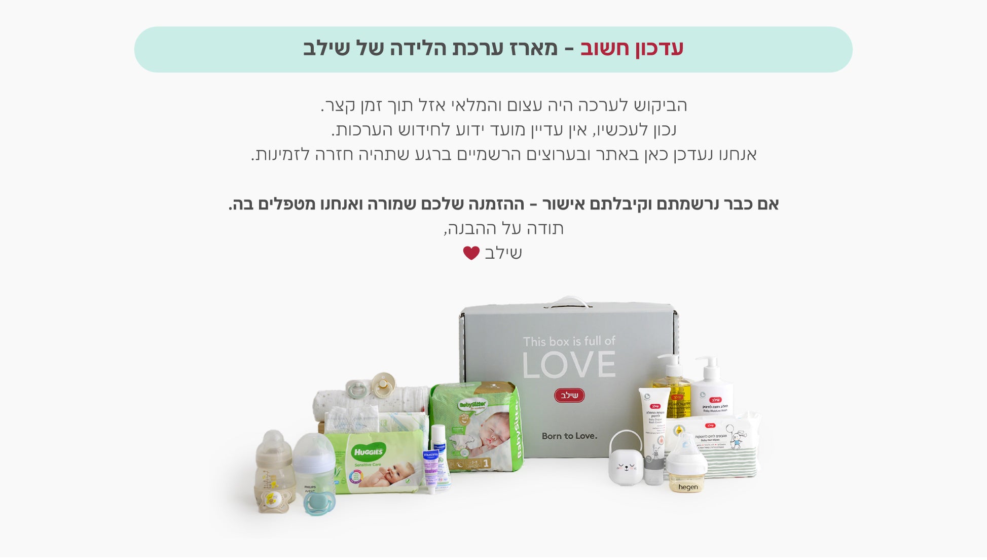 30% הנחה על ביגוד ראשוני 4 פריטי מעבר ב- 100 ₪ 3 חליפות מעבר ב-150 ₪ 2 חליפות פוטר ב- 120 ₪ 4 פריטי גן ב- 120 ₪ הקולקציה החגיגית קולקציית דיסני אוברולים נעליים