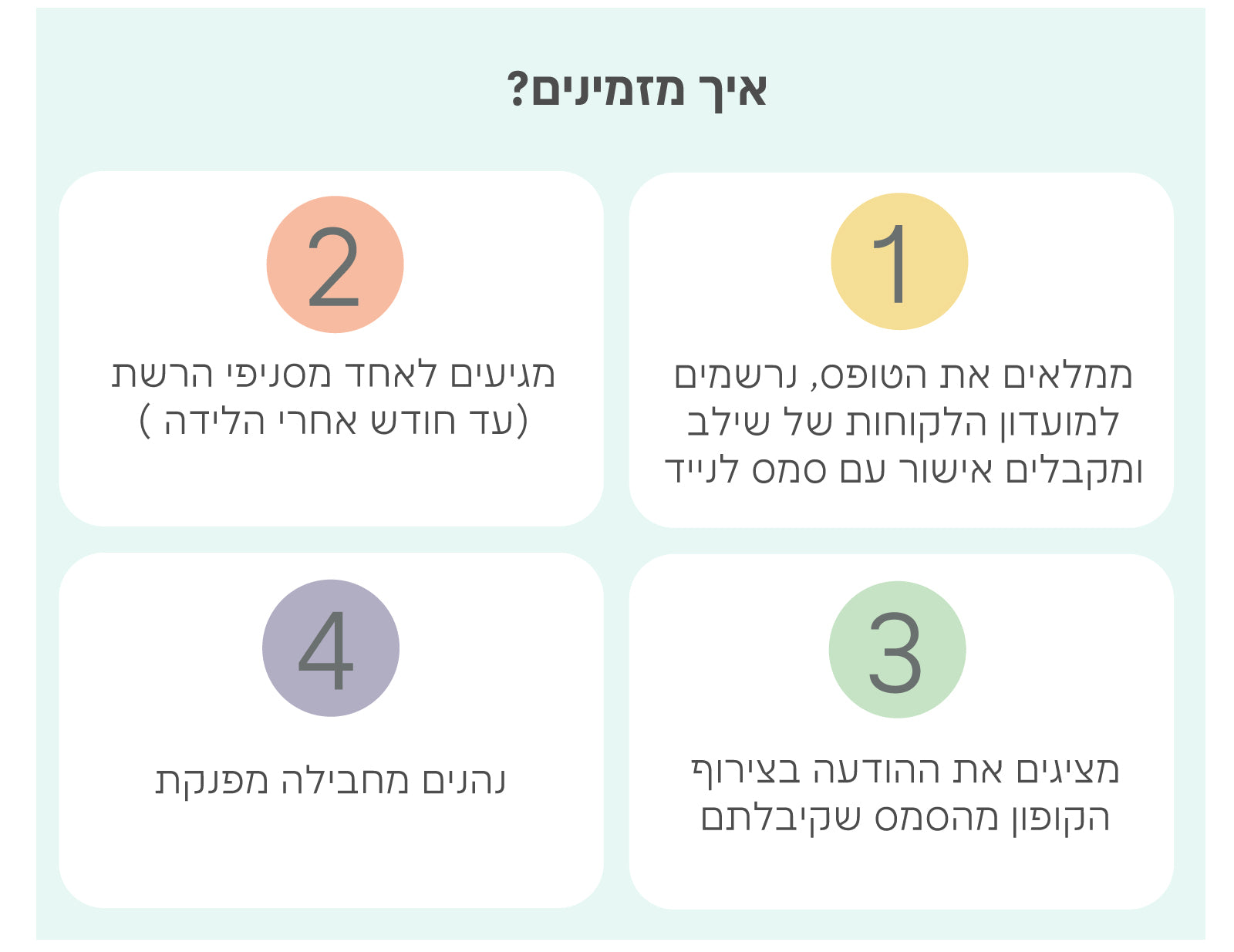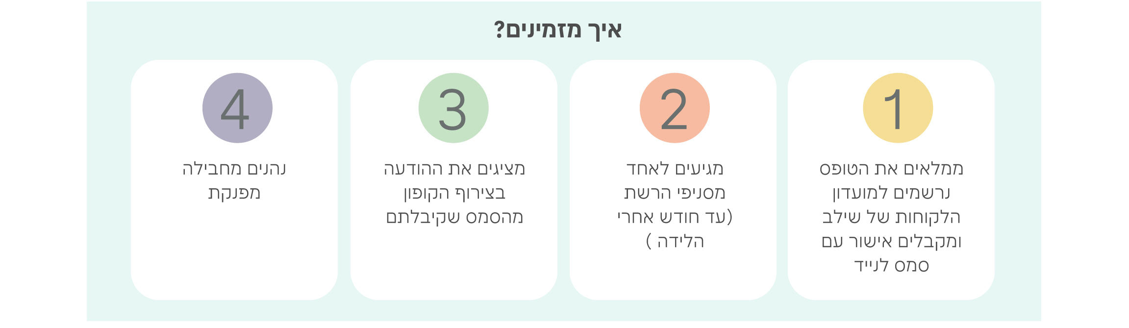 כמו כן, זכאית לקבל את המארז חברת מועדון בהריון או עד חודש ממועד הלידה.