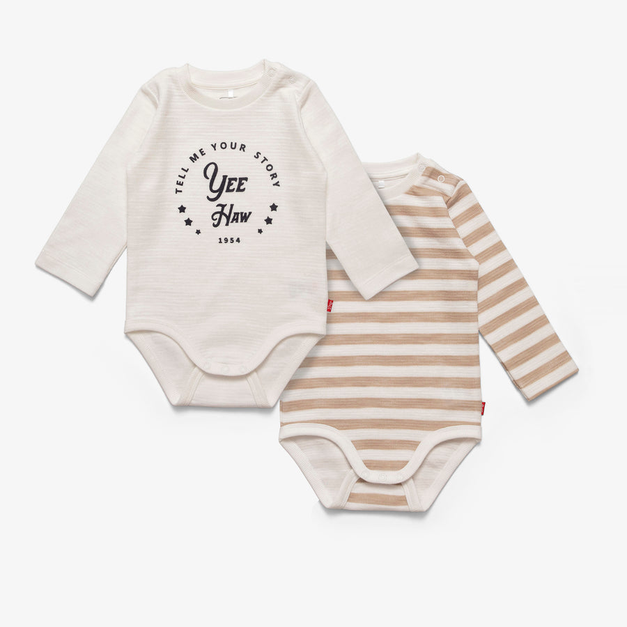זוג בגדי גוף ארוכים בצבעים אוף וויט עם הדפס ופסים.