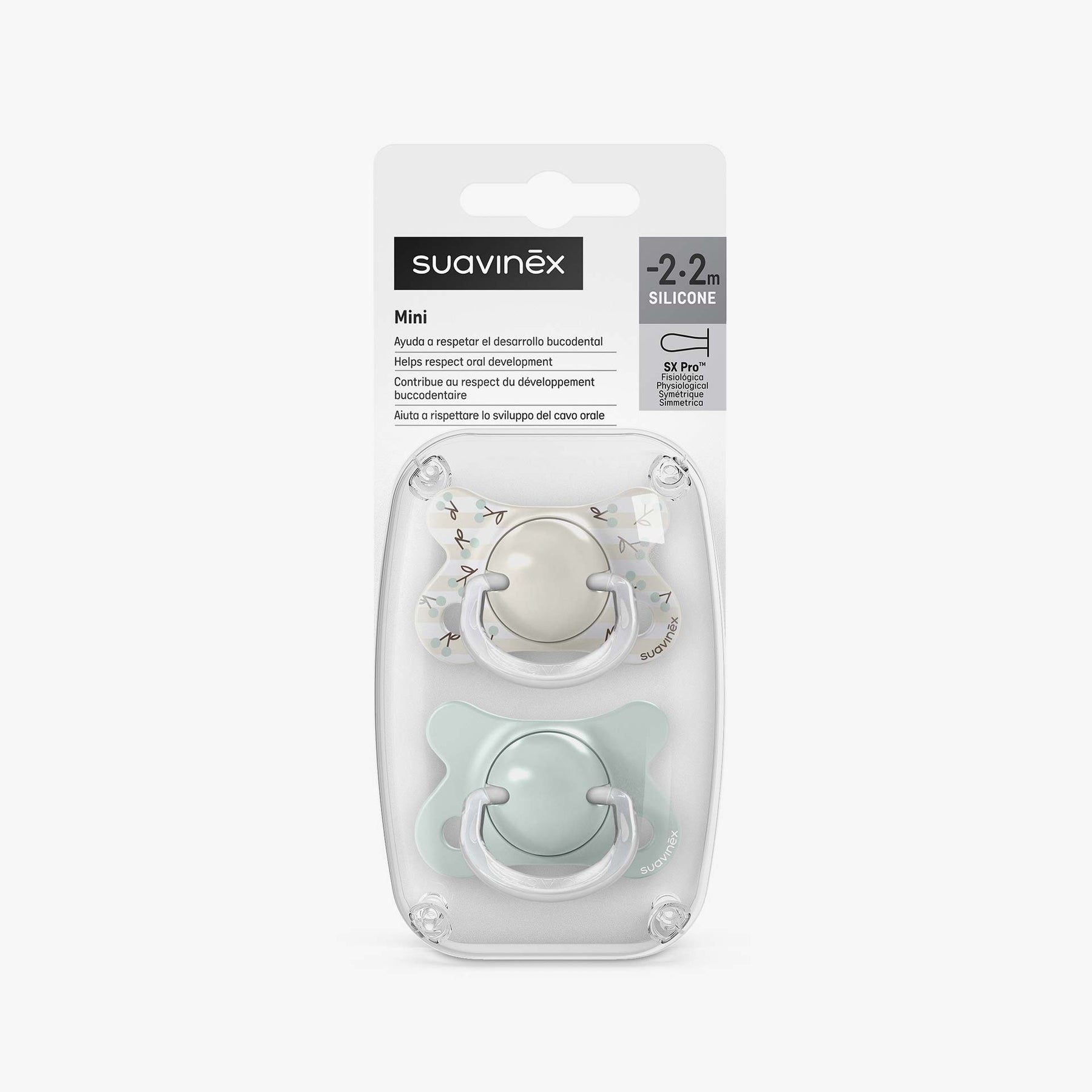 זוג מוצצי -2+2 SX PRO מיני מסדרת בירדיס עם איורים קסומים ופטמת סליקון פיזיולוגית Sx Pro - שפותחה וממולצת על ידי אורתודנטים ומומחים. זו הפטמה היחידה ששומרת על ההתפתחות הטבעית של פה התינוק מדמה שימוש במוצץ שהכי קרוב לאי שימוש במוצץ ומעניקה תחושת רוגע מלאה.