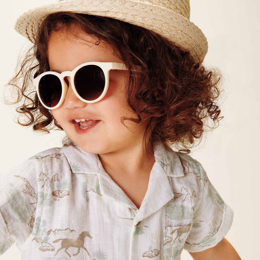 כובע קש בהיר לבנים עם סרט פסים לעיטור.