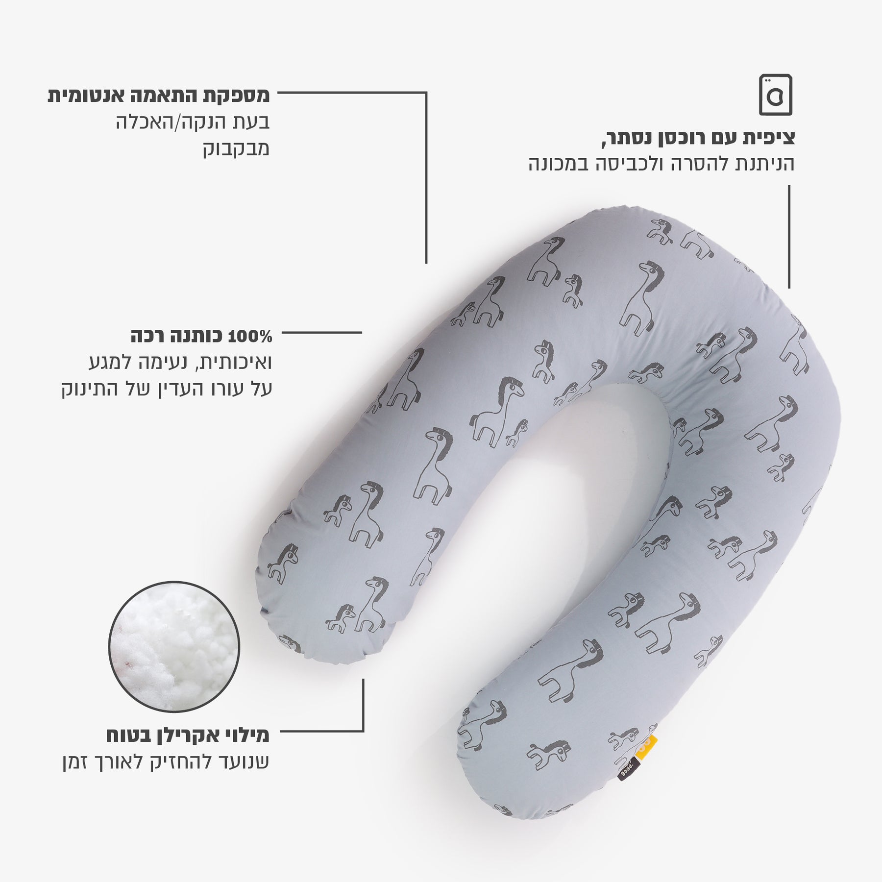 כרית הנקה התומכת בגב התחתון בזמן ההנקה או האכלה מבקבוק ומאפשרת האכלה רגועה ונעימה לאם ולתינוק. הכרית עוטפת את המותן ומספקת משענת בעת האכלה וחוסכת ממך הנקה בגב כפוף. עשויה מבד כותנה איכותי ונעים למגע במילוי אקרילן איכותי ורך שאינו מאבד מנפחו ומעניק תמיכה לגוף התינוק.