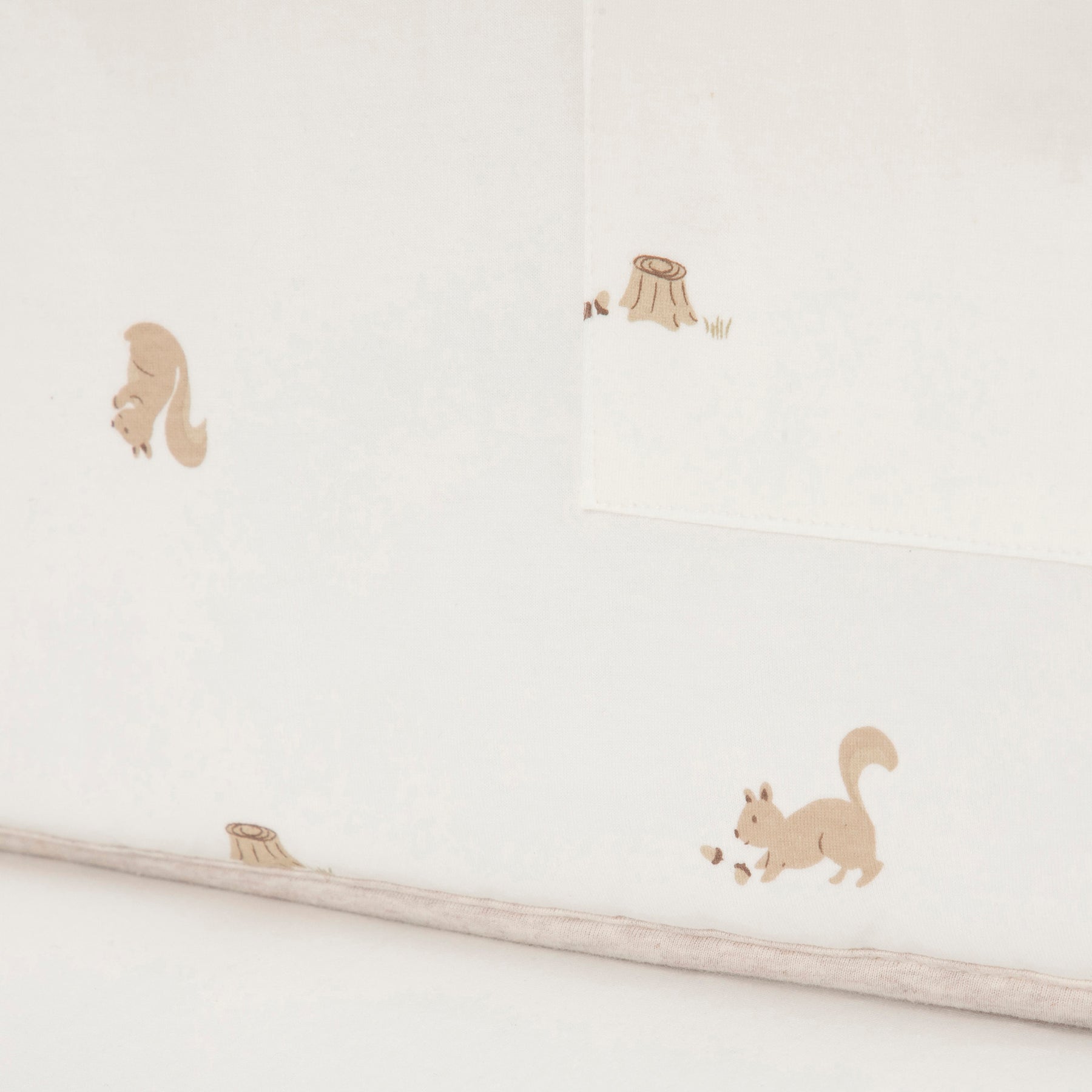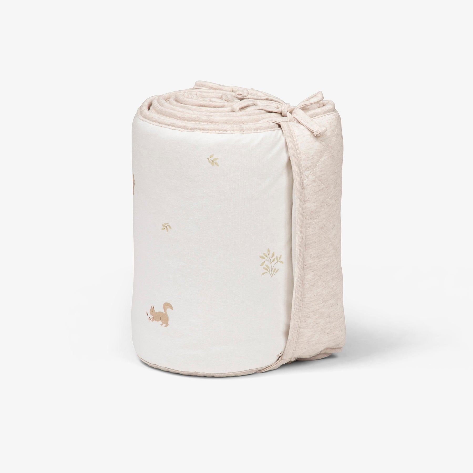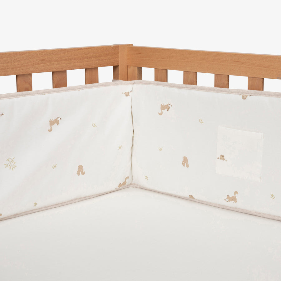מגן ראש מעוצב למיטת התינוק עם כיס קטן לאחסון מוצץ. המגן בהדפס של סנאים מתוך קולקציית mix it החדשה. 100% כותנה+ מילוי 100% הוליפייבר. 28X191 סמ.