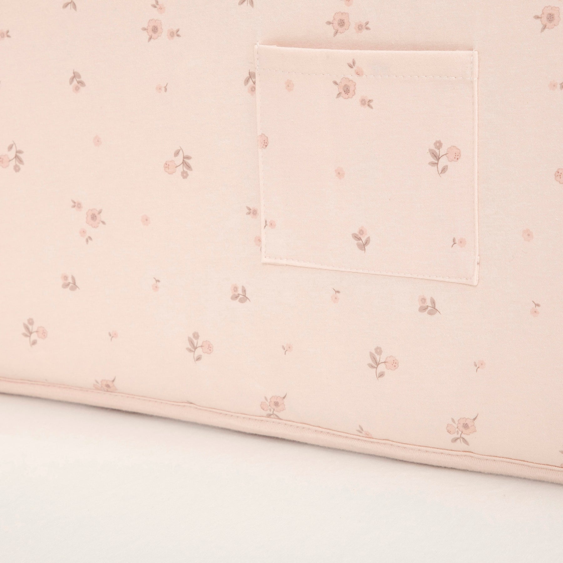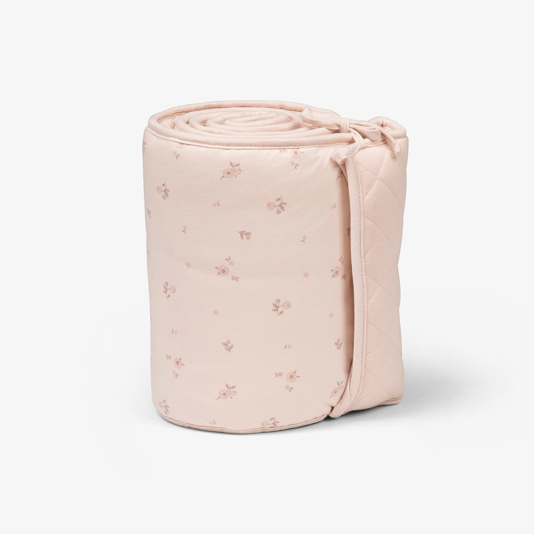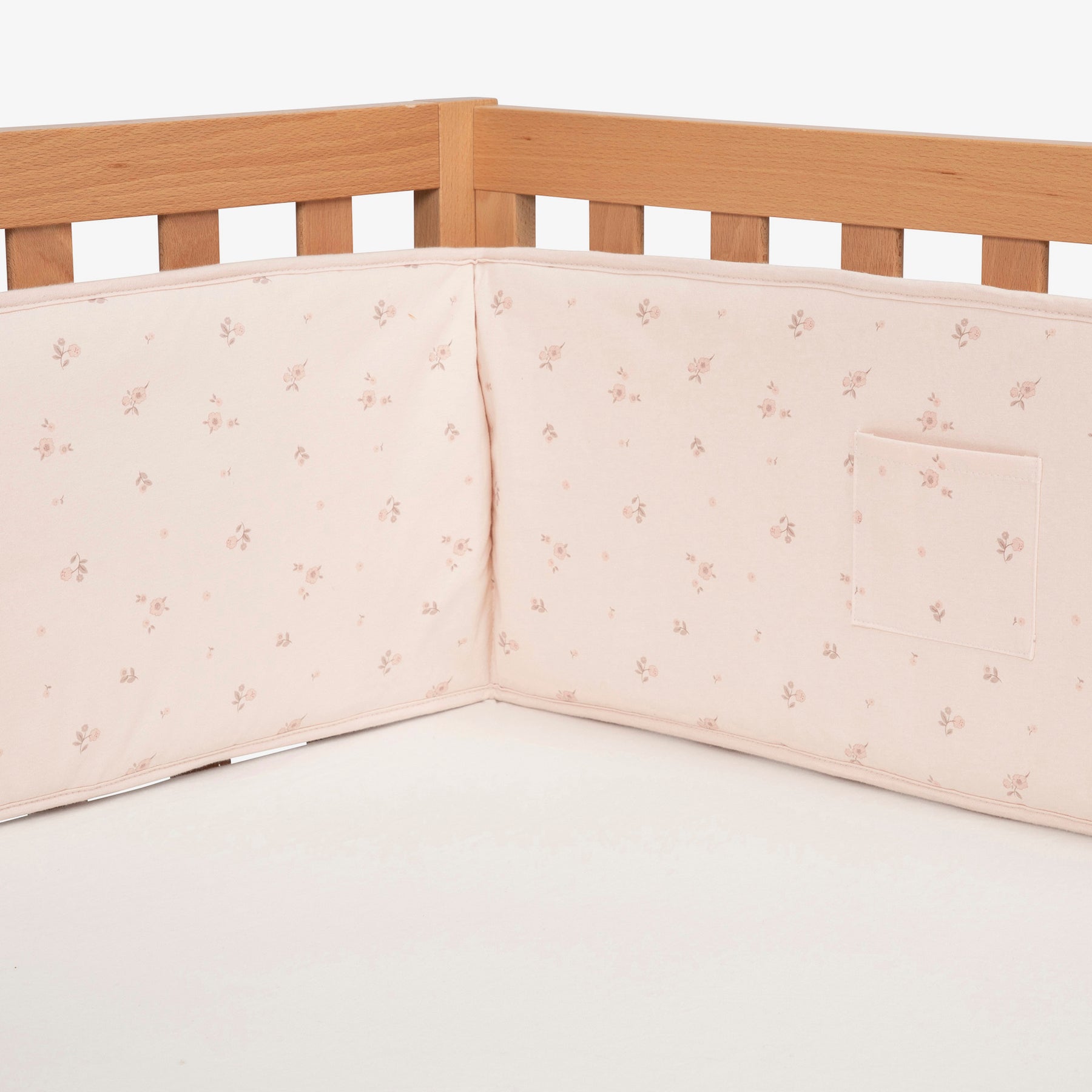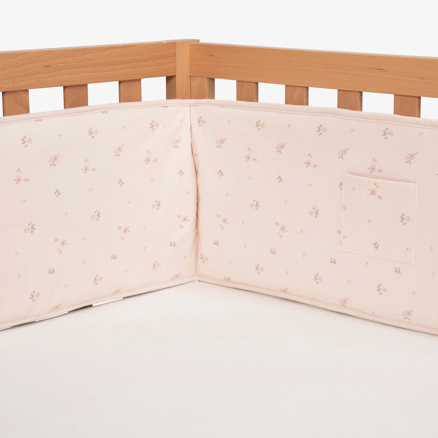 מגן ראש מעוצב למיטת התינוק עם כיס קטן לאחסון מוצץ. המגן בהדפס של פרחים מתוך קולקציית mix it החדשה. 100% כותנה+ מילוי 100% הוליפייבר. 28X191 סמ.