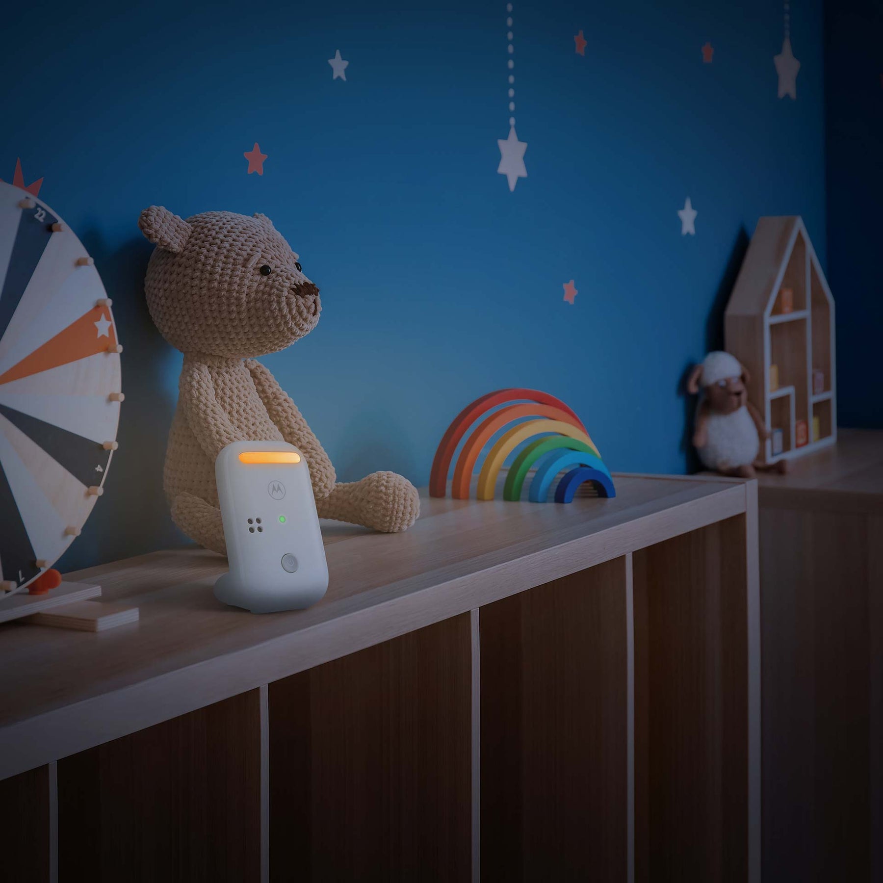 מצויד בתאורת לילה וכולל שירי ערש מובנים להרגעת התינוק.