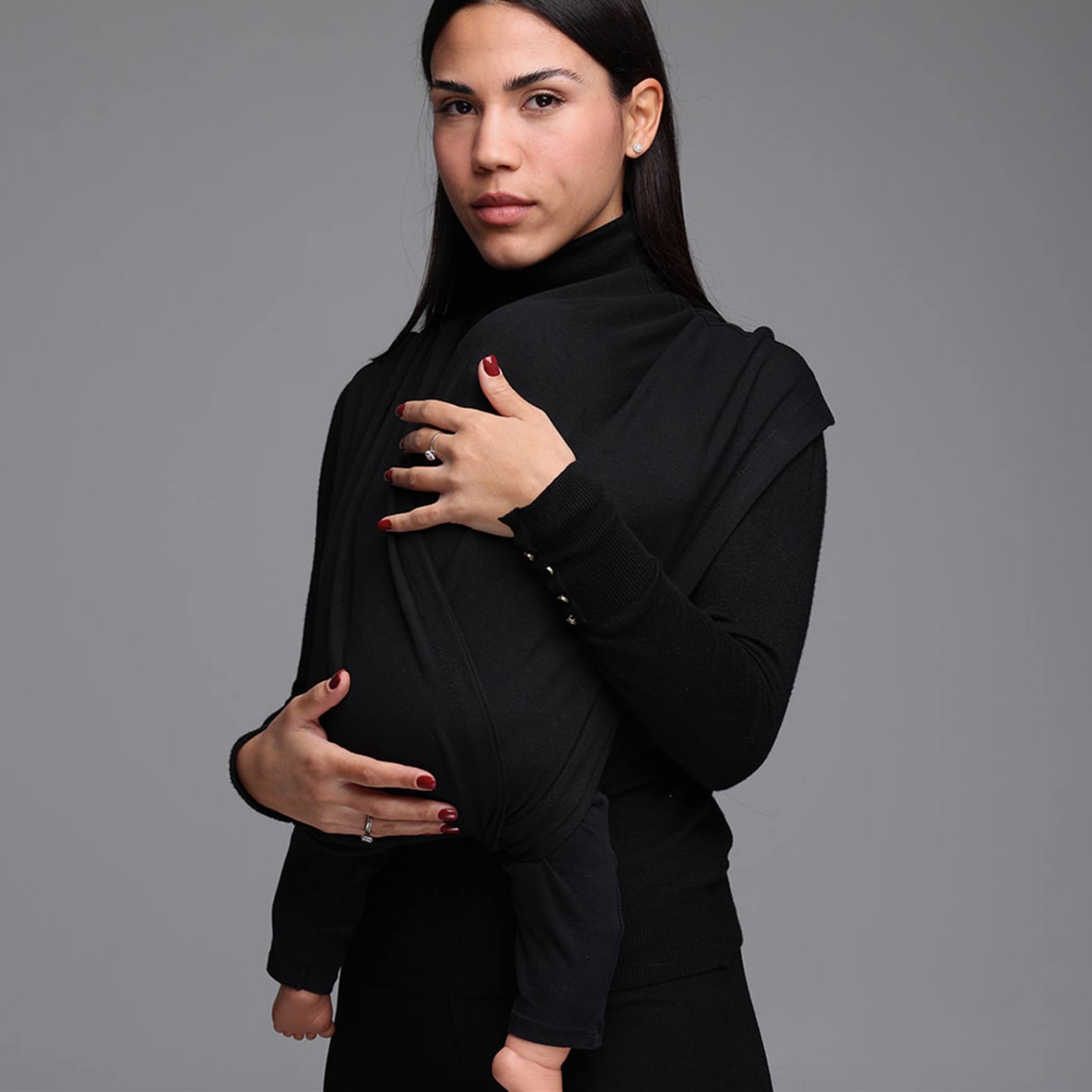 חשוב לשים לב שהתינוק בגובה של נשיקה מההורה (כך נוודא שהוא צמוד מספיק והתינוק בגובה הנכון).