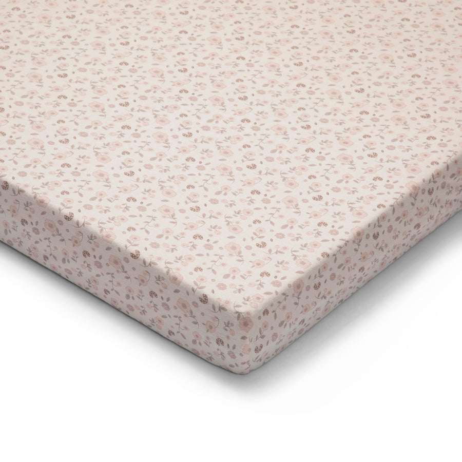 סדין כותנה איכותי למיטת תינוקת. הסדין ורוד בהדפס פרחוני. 100% כותנה. 70X130 סמ.