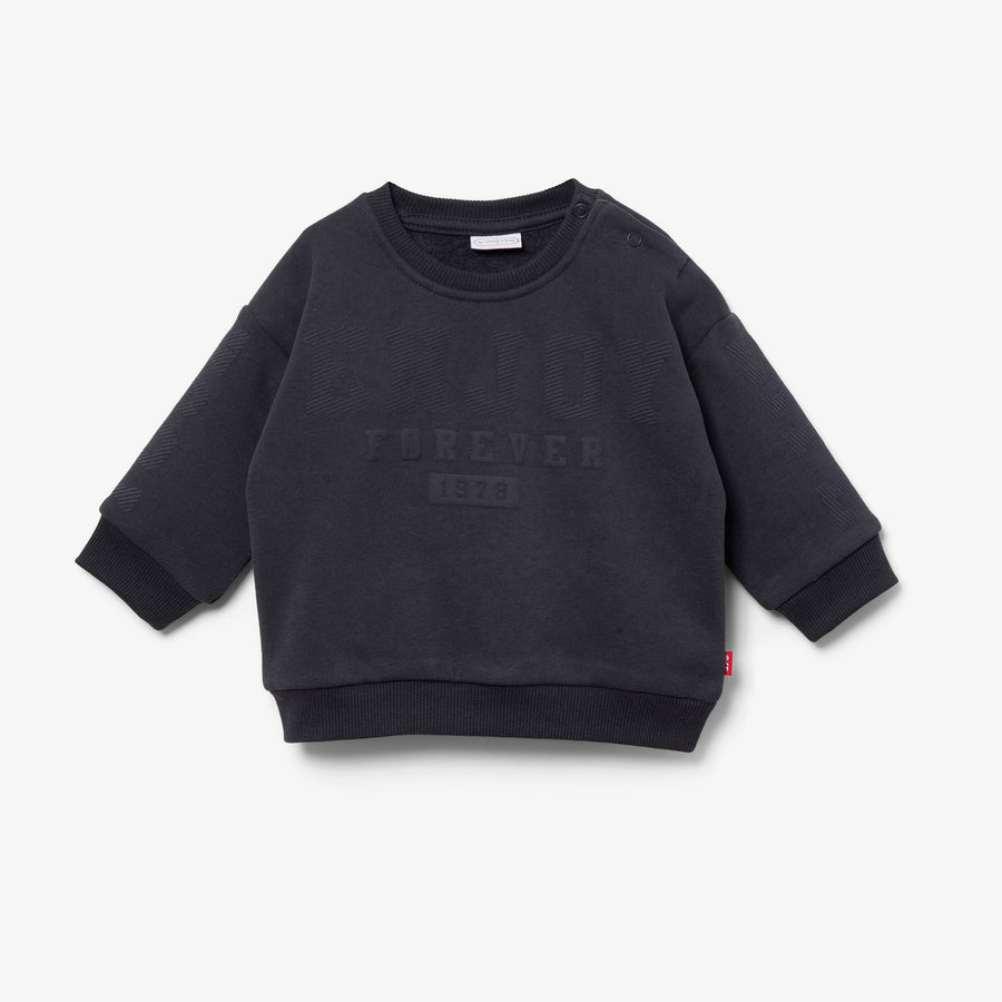 סוויטשירט אופנתי בצבע כחול נייבי עם הדפס כיתוב אנגלית בחזה ועל השרוולים.