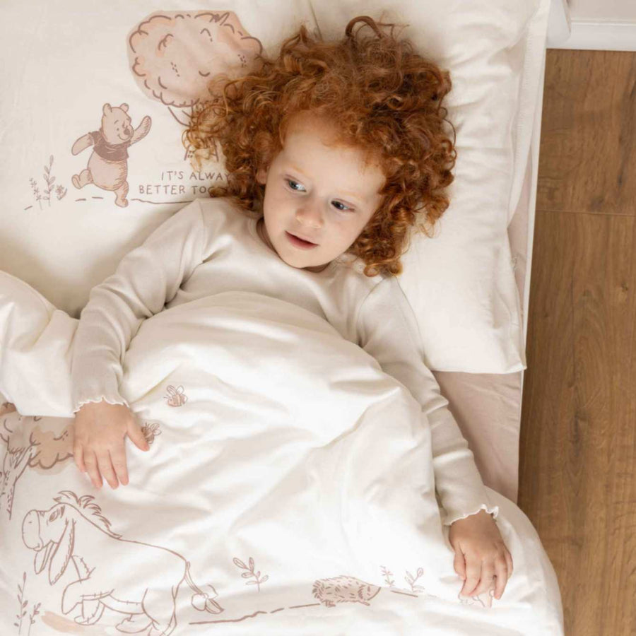סט מצעים למיטת מעבר ולמיטת יחיד. הסט עשוי 100% כותנה איכותית ורכה ומעוצב בהדפס פו הדב. 100% כותנה. הסט כולל: ציפית לכרית 70/50 סמ ציפה לשמיכה 100/140 סמ סדין 70/130 סמ.