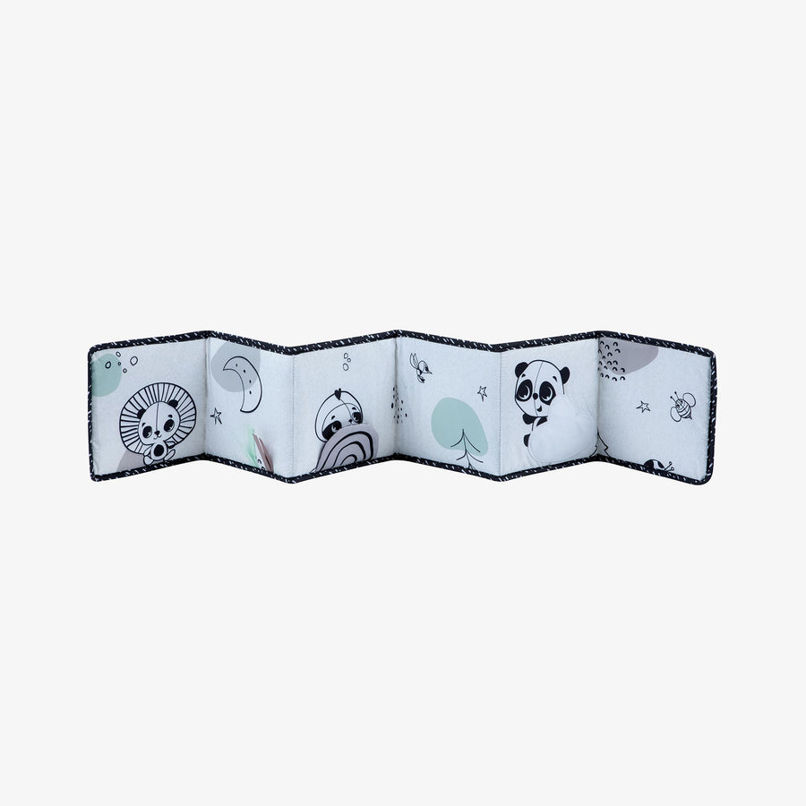 ספר התפתחותי דו-שלבי לתינוק בעל שני צדדים עם איורים מנוגדים בשחור-לבן לגירוי ראיית התינוק. גיל שימוש 0 חודשים ומעלה.