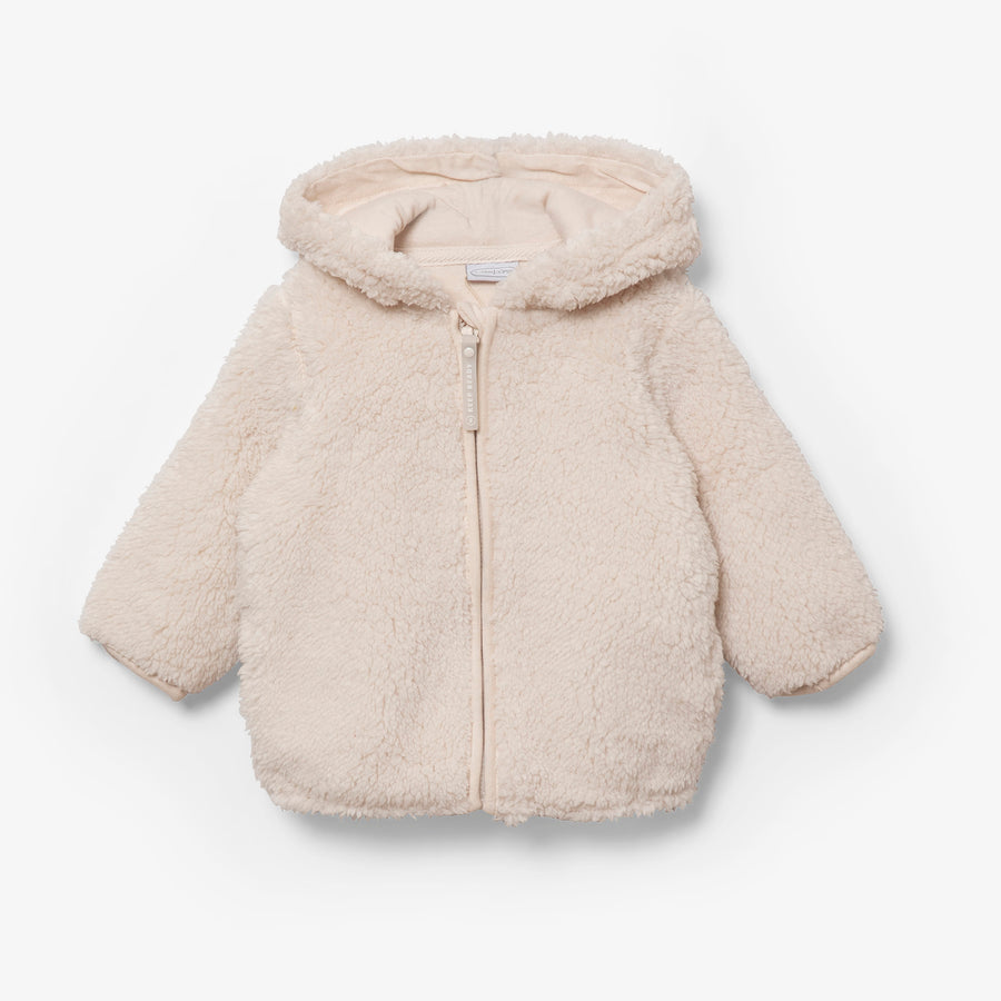 קרדיגן קפוצ'ון מפרוות שרפא בצבע אבן. לקרדיגן סגירת רוכסן.